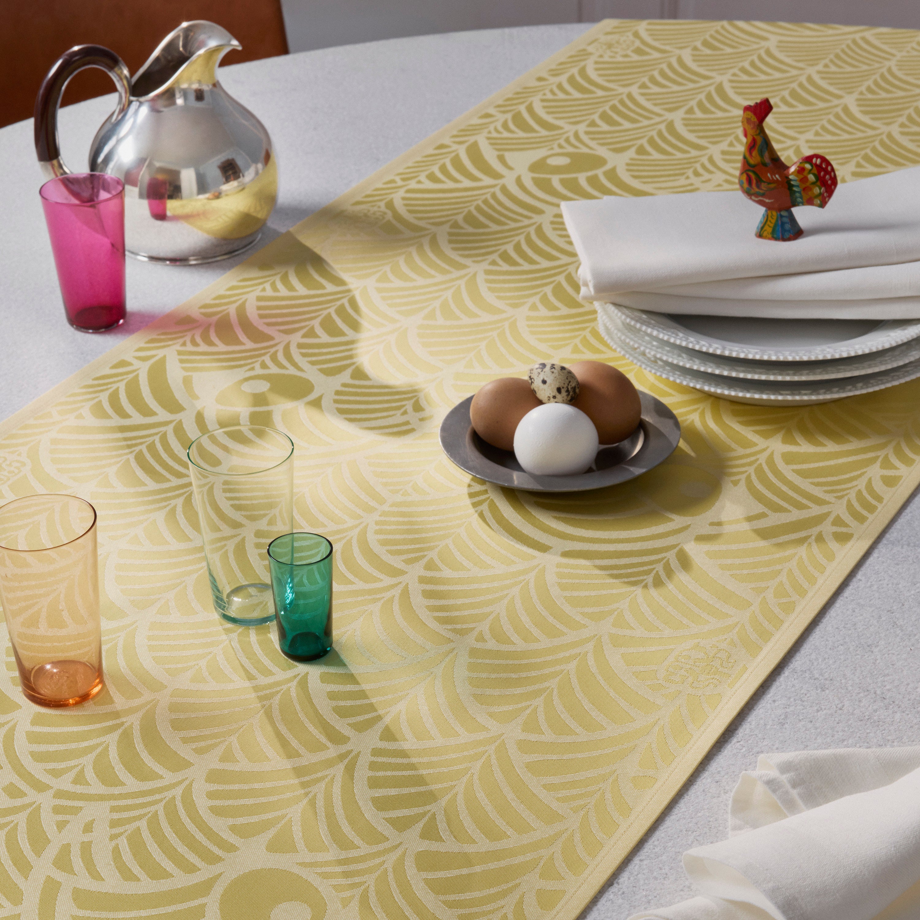 Decken Sie einen schönen Tisch mit dem Oster‑Tischläufer in den zwei Frühlingsfarben Yellow und Light Green.