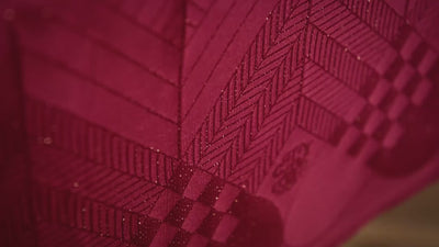 Die Jubiläumsversion des Christmas Rustic Tischsets ist aus feiner, dunkelroter Baumwolle mit goldfarbenen, metallischen Fäden gewebt.