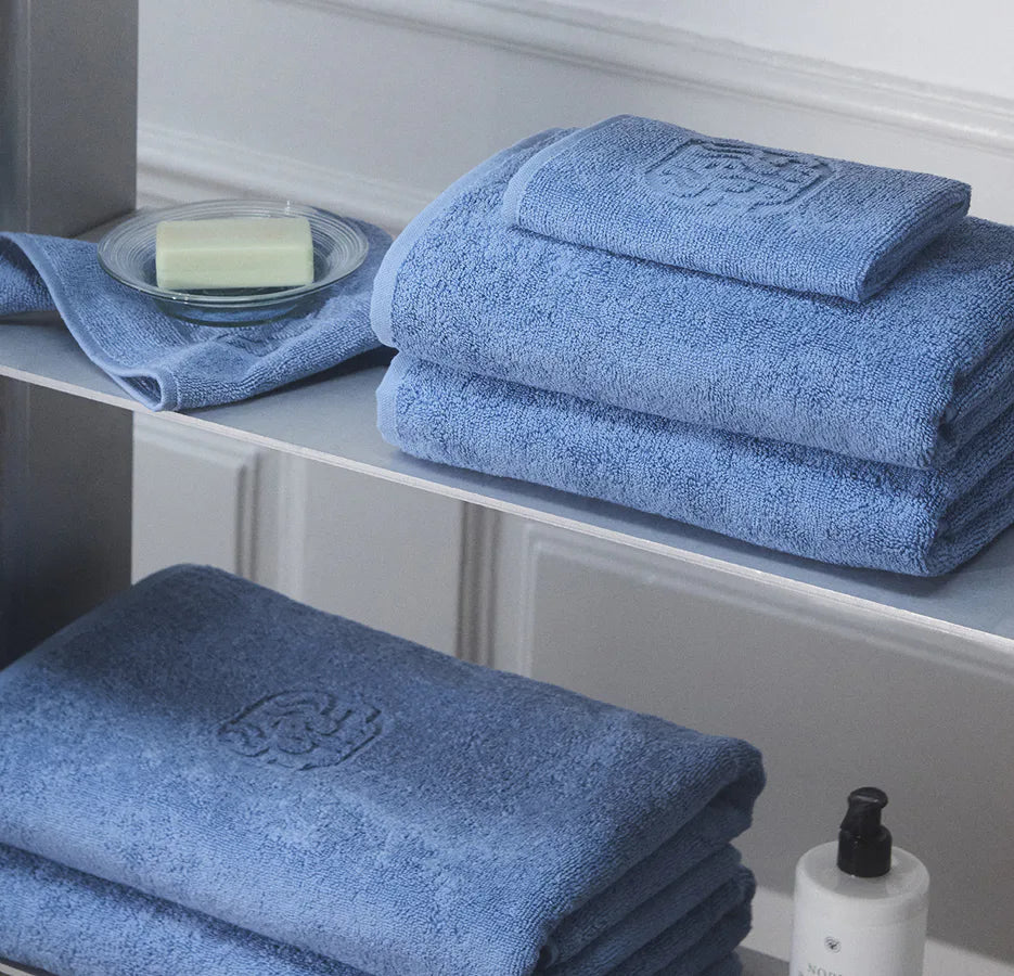 Lad en let sommerbrise forvandle dit badeværelse med Damask Terry-håndklæder i den nye farve Bright Blue. Stakke med bløde badehåndklæder eller et smukt håndklæde til hænderne er luksus derhjemme.