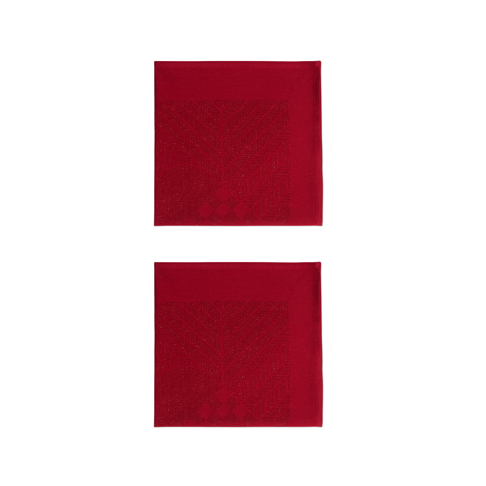 Georg Jensen Damask fejrer juledesignets 50-års jubilæum med et funklende præg på det ikoniske motiv. De limiterede jubilæumsservietter, Christmas 50, i Gold Red er vævet i langfibret, dybrød bomuld med gyldne, metalliske tråde. Glimtende servietter til den magiske juletid.