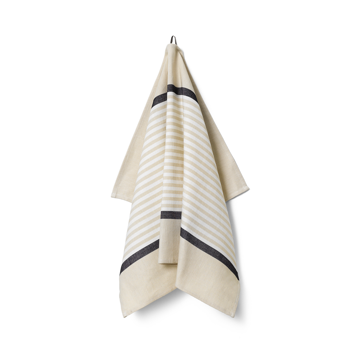 Abild er et klassisk viskestykke med harmoniske striber som bærende designelement. Viskestykket er vævet i en kraftig hør- og bomuldskombination, der giver optimale tørreegenskaber.