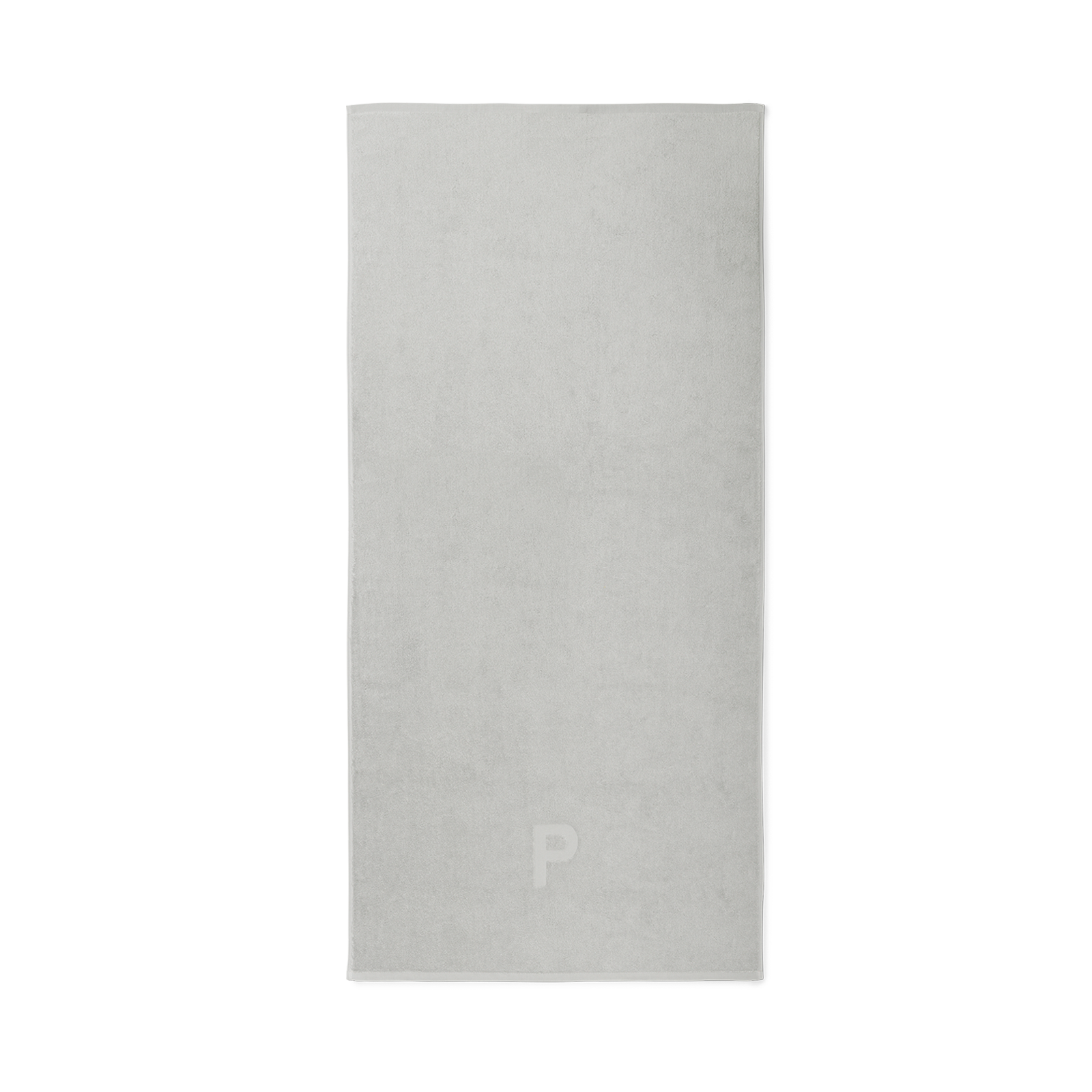 Damask Terry badehåndklæde med indvævet P bogstav. Badehåndklædet er jacquardvævet i 100 % dobbelttvundet, kæmmet bomuld med bogstav i relief. Det er både blødt, glansfuldt og slidstærkt. Den elegante farve, Platinum Grey, er en let og kølig nuance af grå.