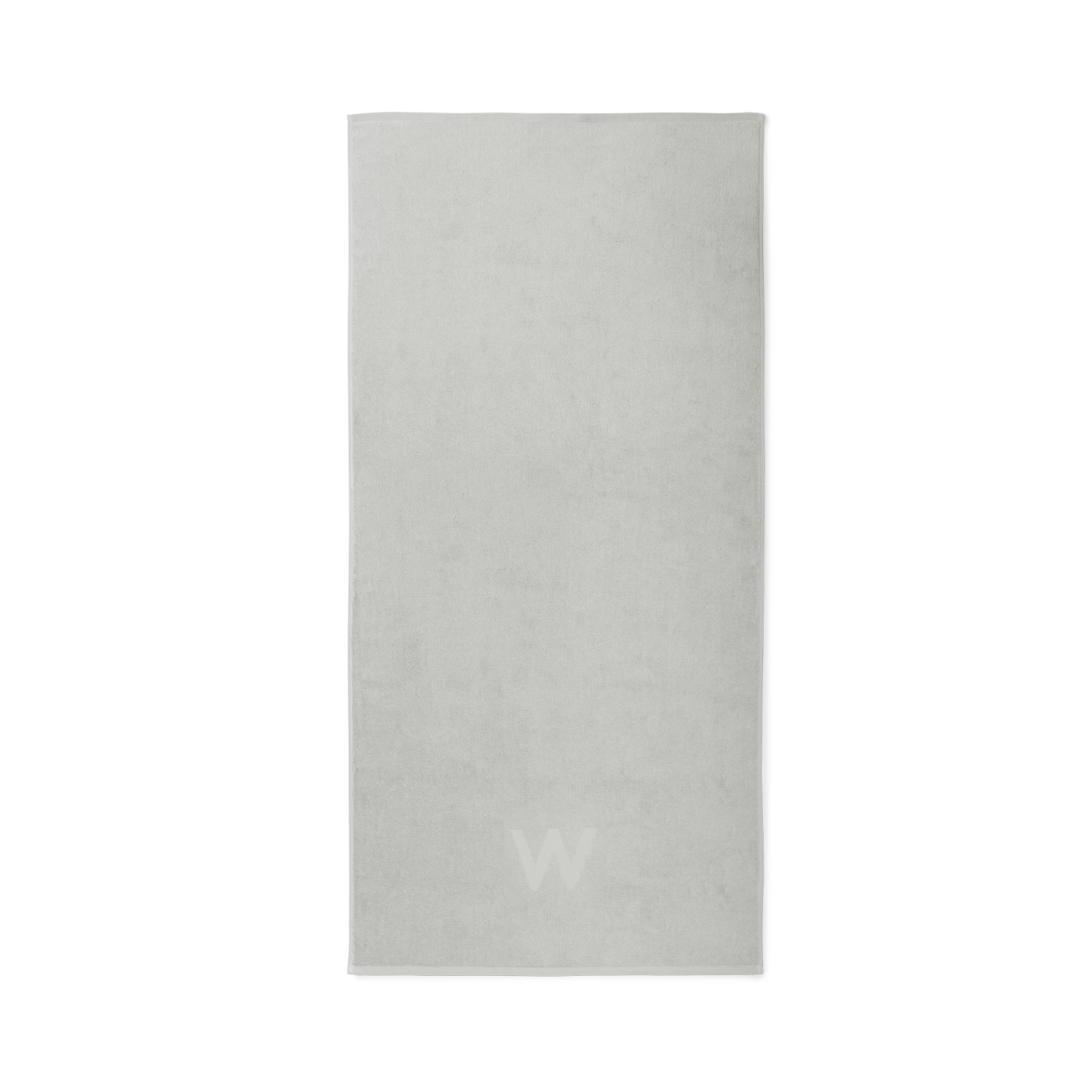 Damask Terry badehåndklæde med indvævet W bogstav. Badehåndklædet er jacquardvævet i 100 % dobbelttvundet, kæmmet bomuld med bogstav i relief. Det er både blødt, glansfuldt og slidstærkt. Den elegante farve, Platinum Grey, er en let og kølig nuance af grå.