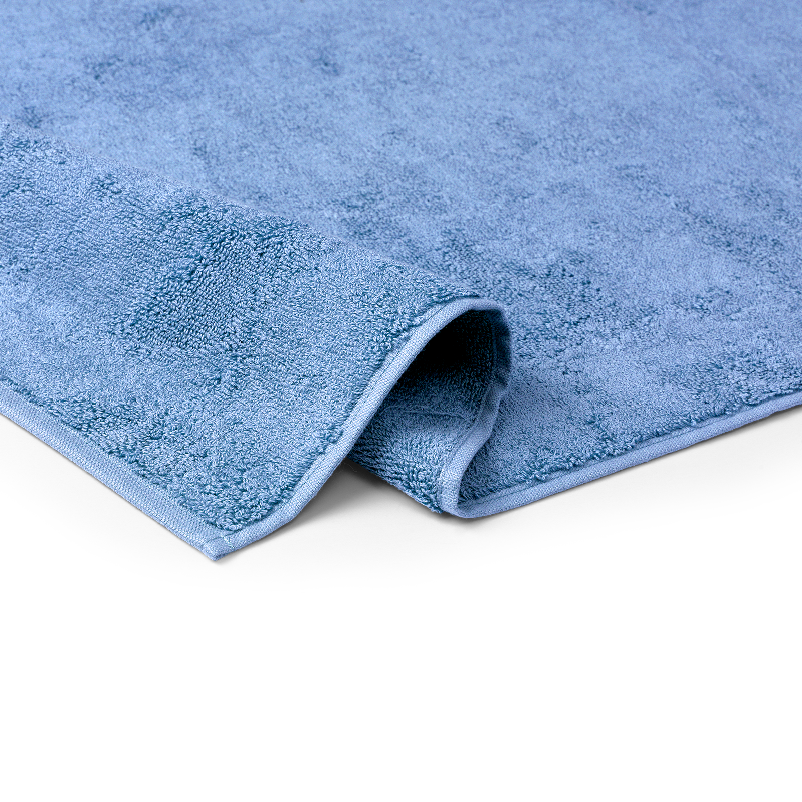 Den blå bademåtte Damask Terry er frottévævet i 100 % dobbelttvundet, kæmmet bomuld. Den tykke måtte føles blød og behagelig under dine fødder og luner på de fleste badeværelser. Farven Bright Blue er en klar blå nuance.