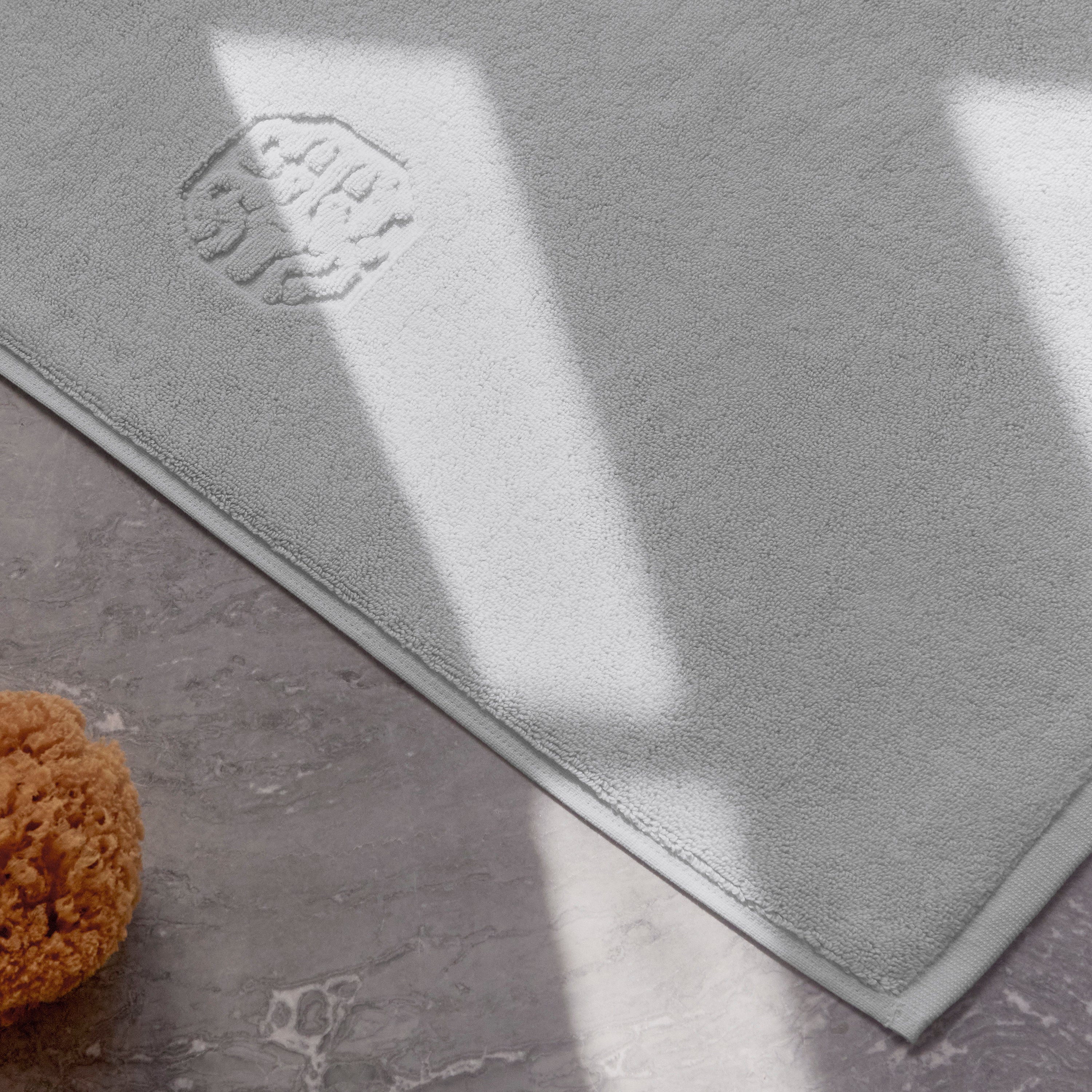 Damask Terry bademåtten har et enkelt udtryk med Georg Jensen Damasks ikoniske logo indvævet som elegant detalje. Platinium Grey er en lys og rolig nuance af grå.