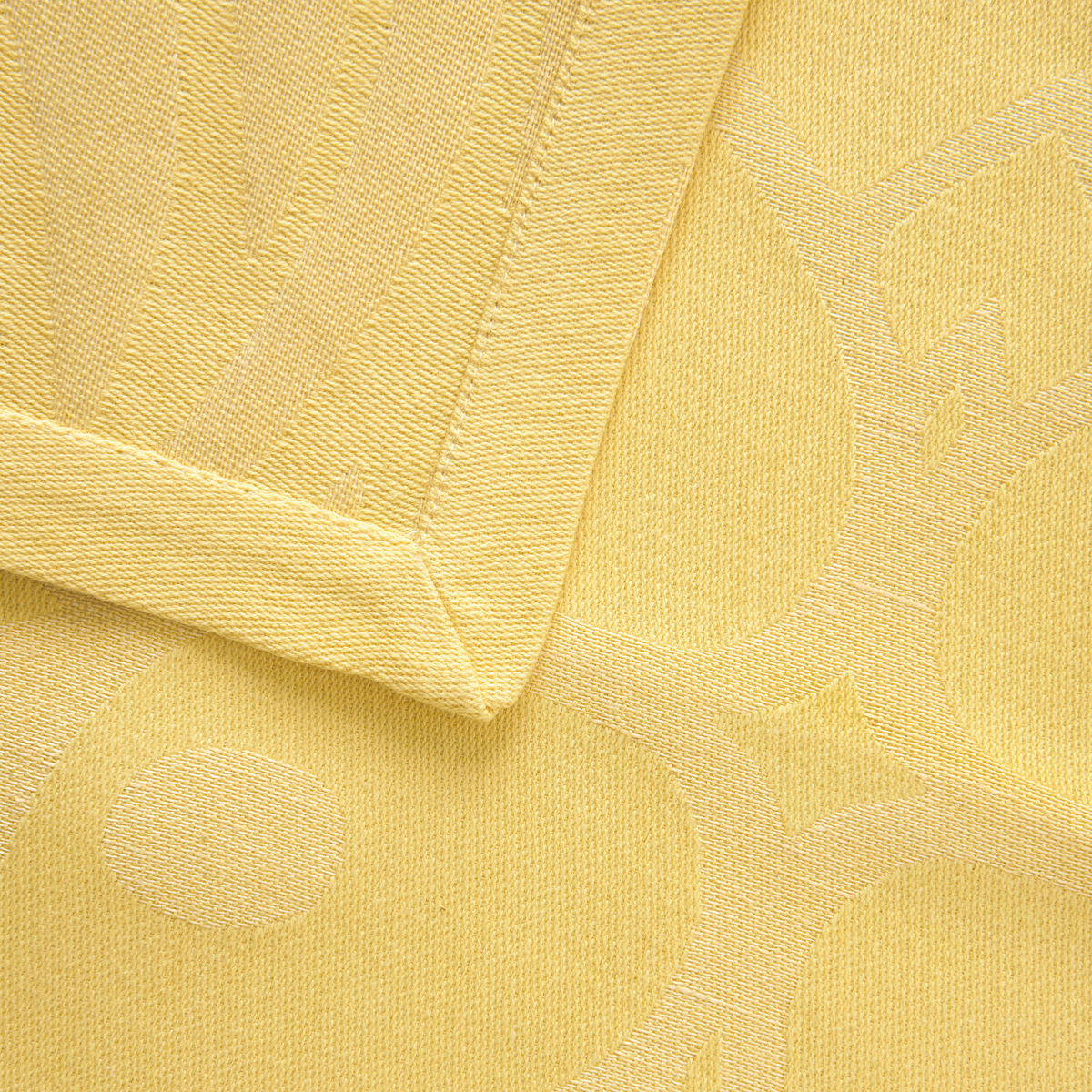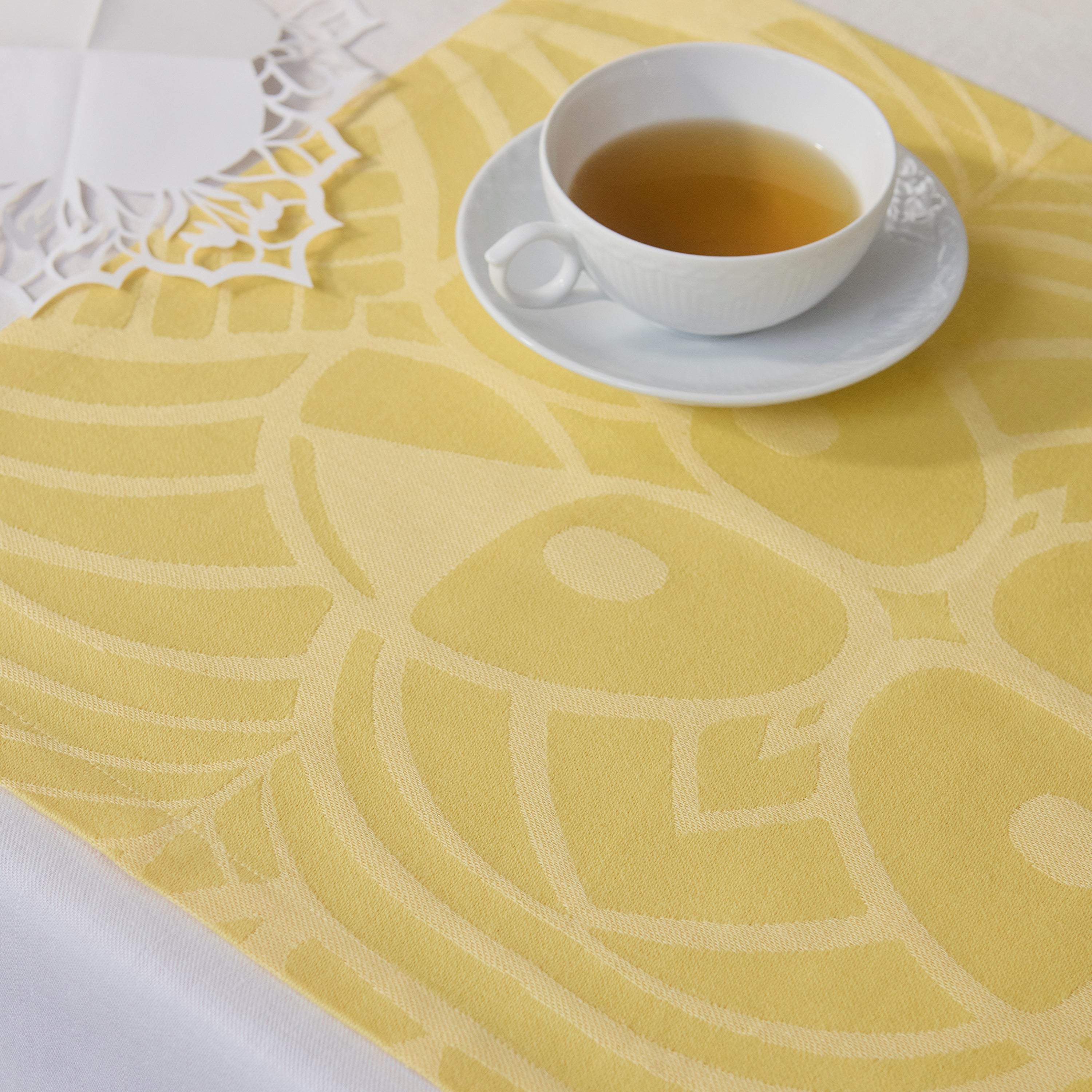 Den kraftige damaskvævning i 50 % hør og 50 % bomuld giver dækkeservietterne et rustikt udtryk, som gør dem lidt mere uformelle, men ikke mindre smukke at dække op med i påsketiden.