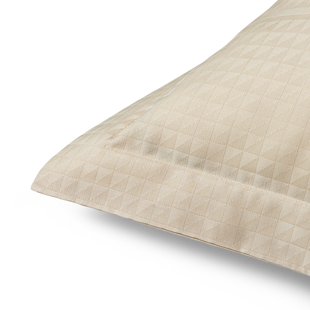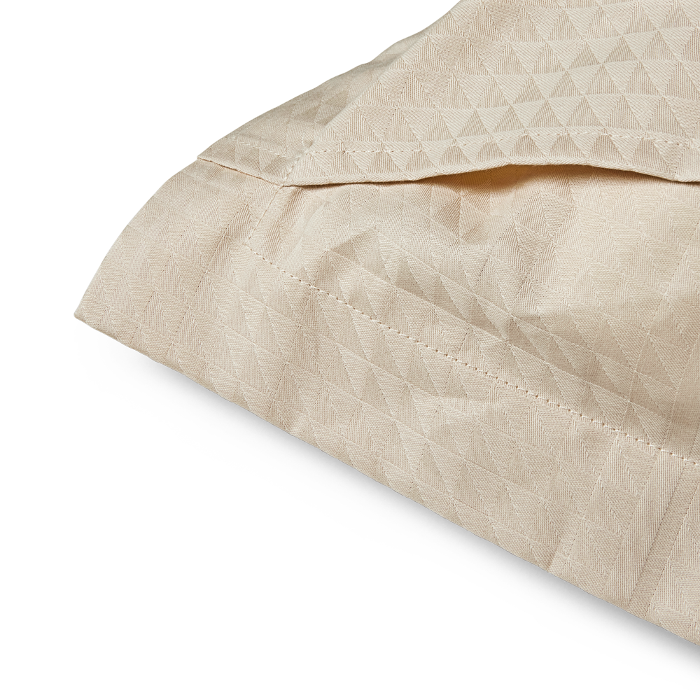 Georg Jensen Damasks Facet sengetøj har et stringent design og er damaskvævet i 100 % kæmmet bomuld, som giver en blød og glat overflade. Med Facet designet benytter tekstilkunstner Jette Nevers den klassiske damaskvævning til at skabe et elegant skyggespil, der smukt fremhæves i den lyse beige farve Archive.