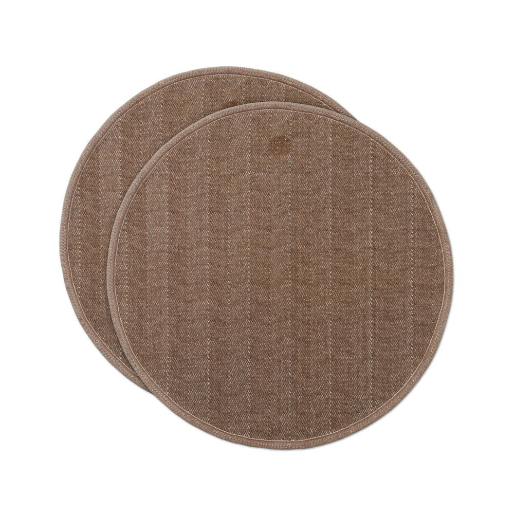 Herringbone er er en kraftig sildebensvævet dækkeserviet i 100 % bomuld. Her i en rund variant, der ligger godt på bordet og har et lille broderet Georg Jensen Damask-logo. Den nøddebrune farve Walnut er en efterårsklassiker, der går igen på tværs af Georg Jensen Damasks kollektion.