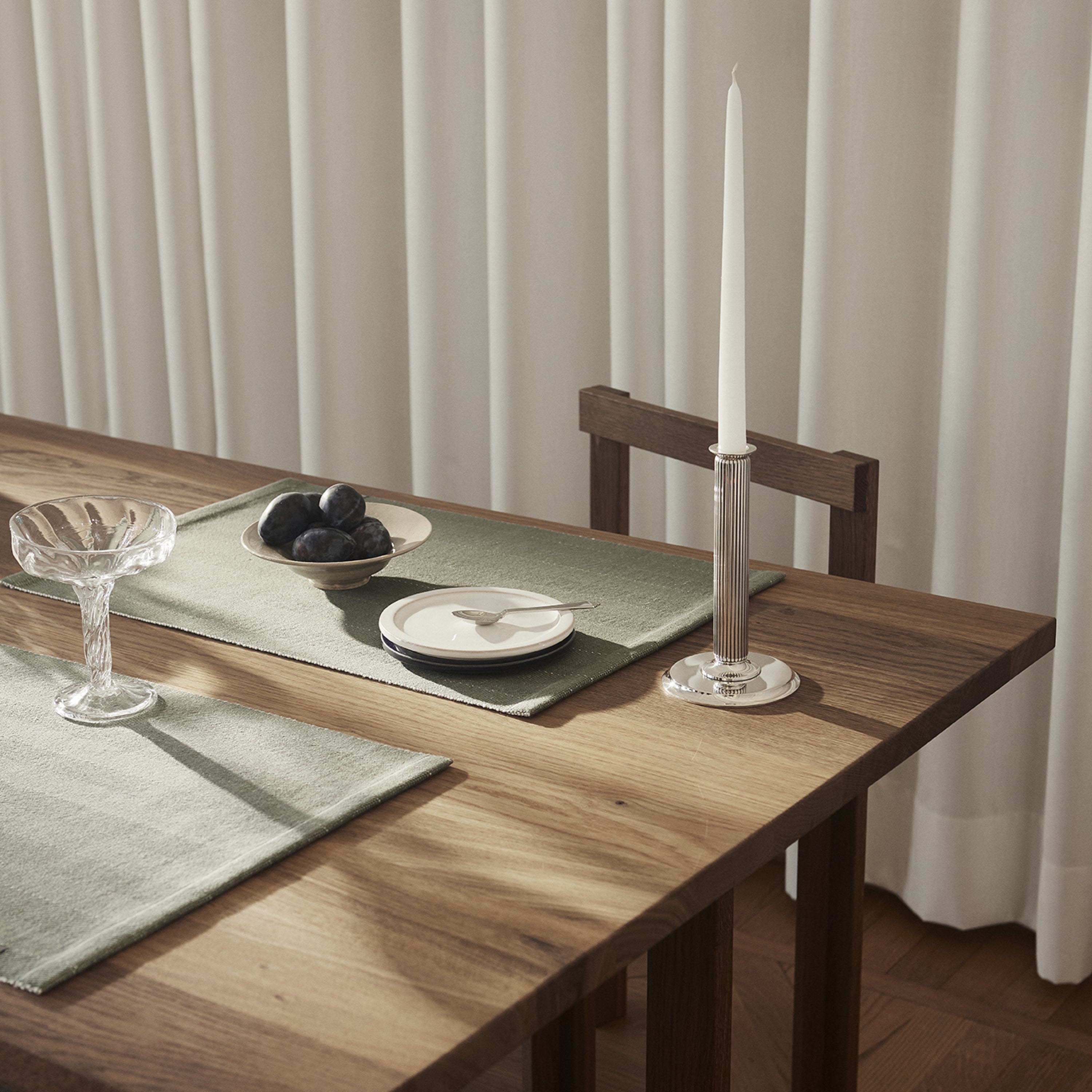 Herringbone er en kraftig sildebensvævet dækkeserviet i 100 % bomuld. God til både weekend og hverdag. Dækkeservietten har et lille broderet Georg Jensen Damask-logo og ligger godt på bordet. Favoritfarven Mineral Green er en lysegrøn forårsbebuder.