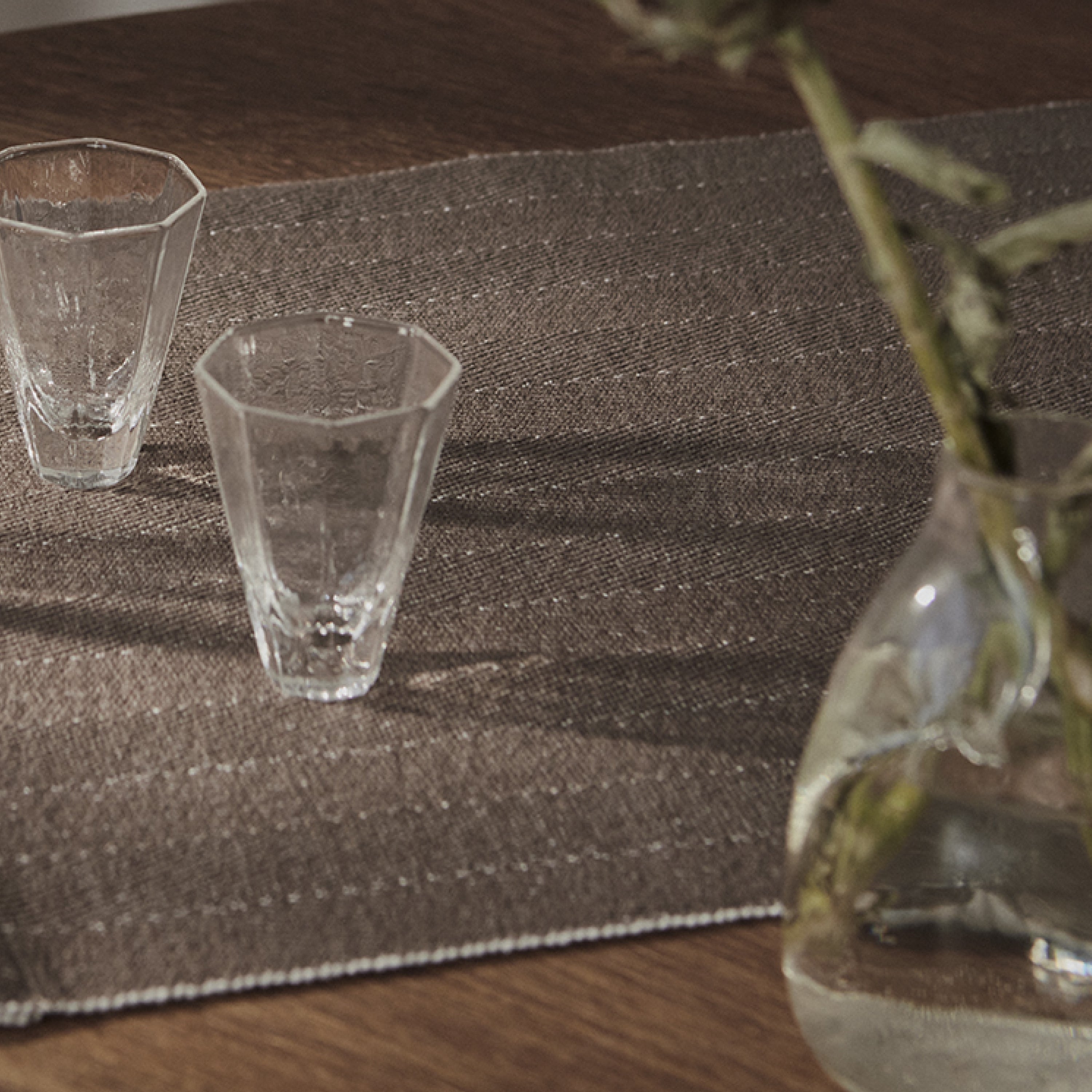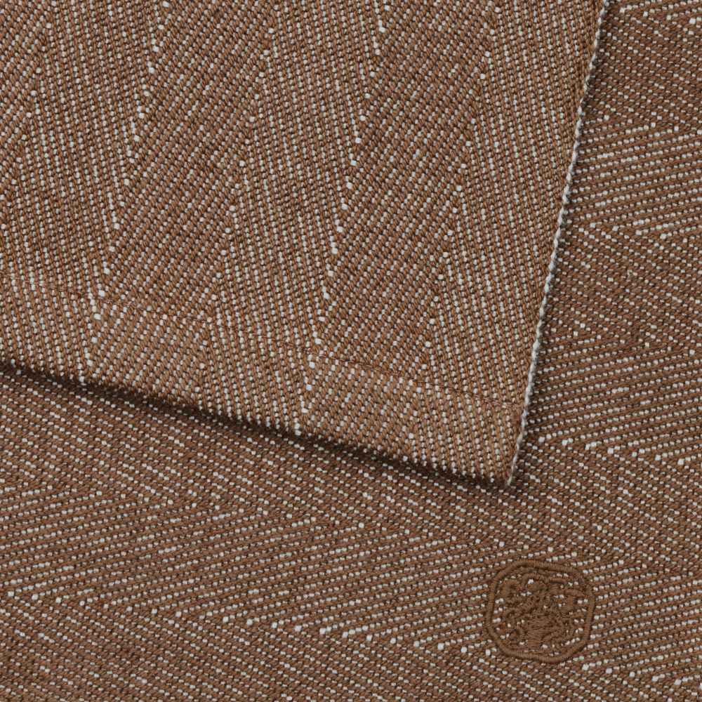 Herringbone er en sildebensvævet dækkeserviet i 100 % kraftigt bomuld. Dækkeservietten ligger pænt på bordet og har et lille broderet Georg Jensen Damask-logo. Farven Walnut er en nøddebrun klassiker på tværs af Georg Jensen Damasks kollektion.
