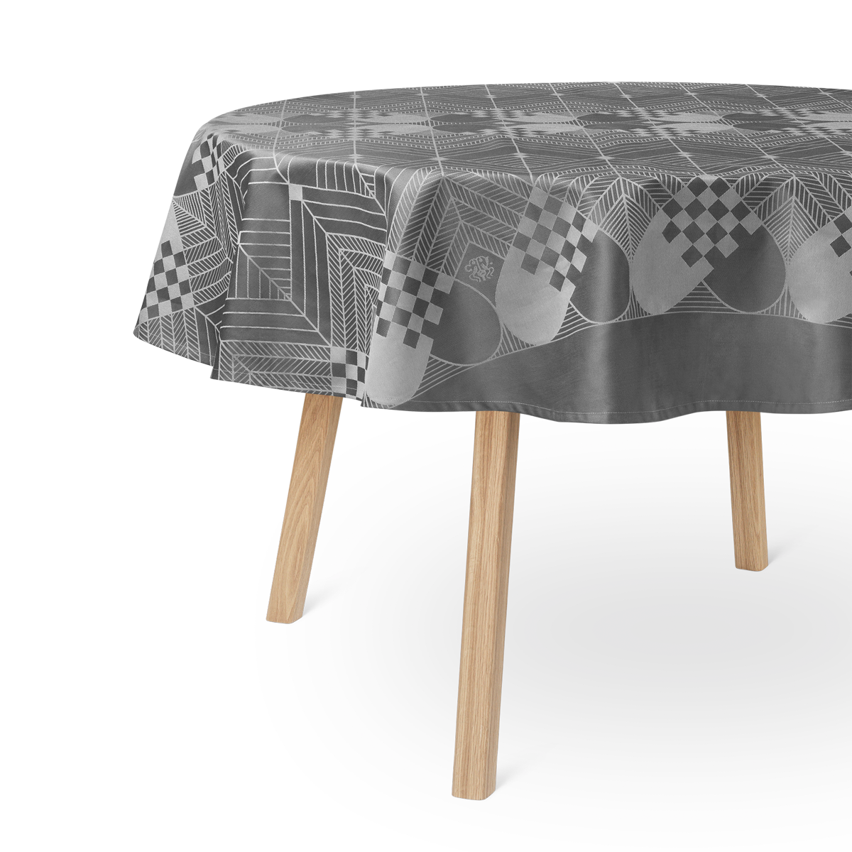 Den runde juledug med det ikoniske motiv er, med sin symbolske fremmaning af julen som hjerternes fest, et nostalgisk signaturdesign i damaskkollektionen. Det er en eksklusiv dug, man vokser op med og giver videre til næste generation – og dugen fås nu i den skønneste grå farve.