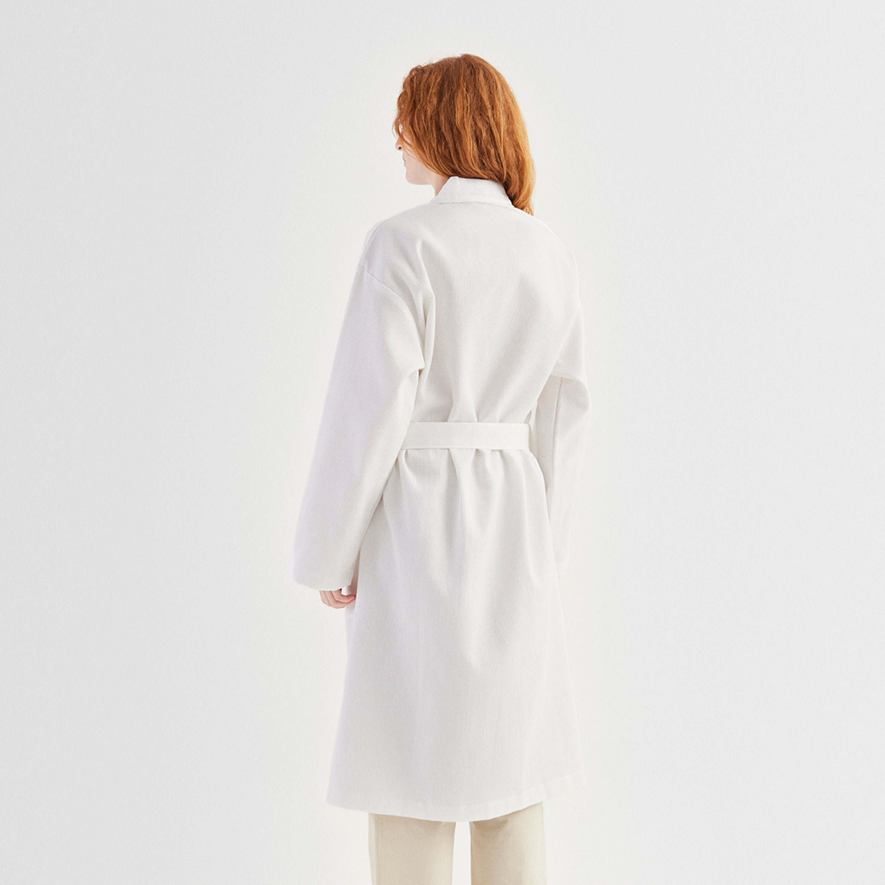 I hvid er den vaffelvævede Kimono+ et elegant bud på den helt klassiske morgenkåbe. Lys, varm og ganske uundværlig på kølige dage.