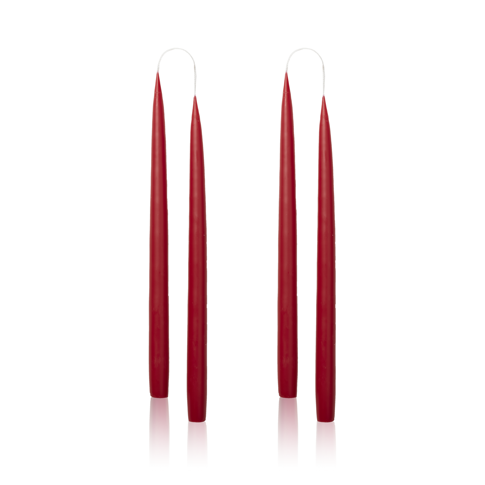 Smukke lange lys i en dybrød farve. Lysene har et elegant design, der gør dem til stilfulde indslag i borddækningen eller rundt omkring i hjemmet. I den dybe røde farve er lysene særligt velegnede på julebordet, til fødselsdagen eller en romantisk middag for to.