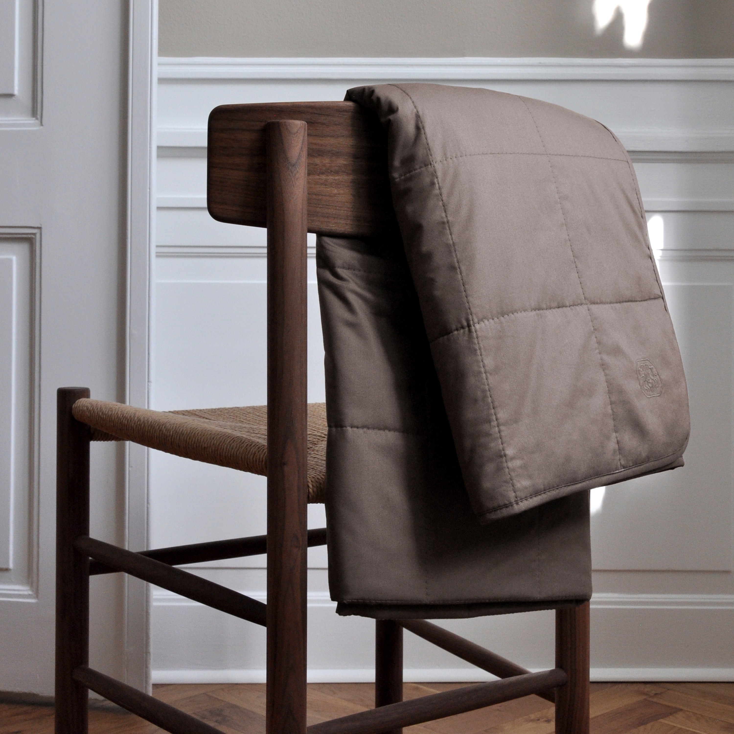 Mulberry Silk Quilt er et eksklusivt quiltet tæppe i et helt enkelt design. Tæppet er percalevævet i 100 % bomuld med temperaturregulerende fyld af mulberry-silke, også kaldet morbærsilke, som er den fineste kvalitet. Køligt om sommeren og lunt om vinteren. Den elegante, nøddebrune farve hedder Walnut.
