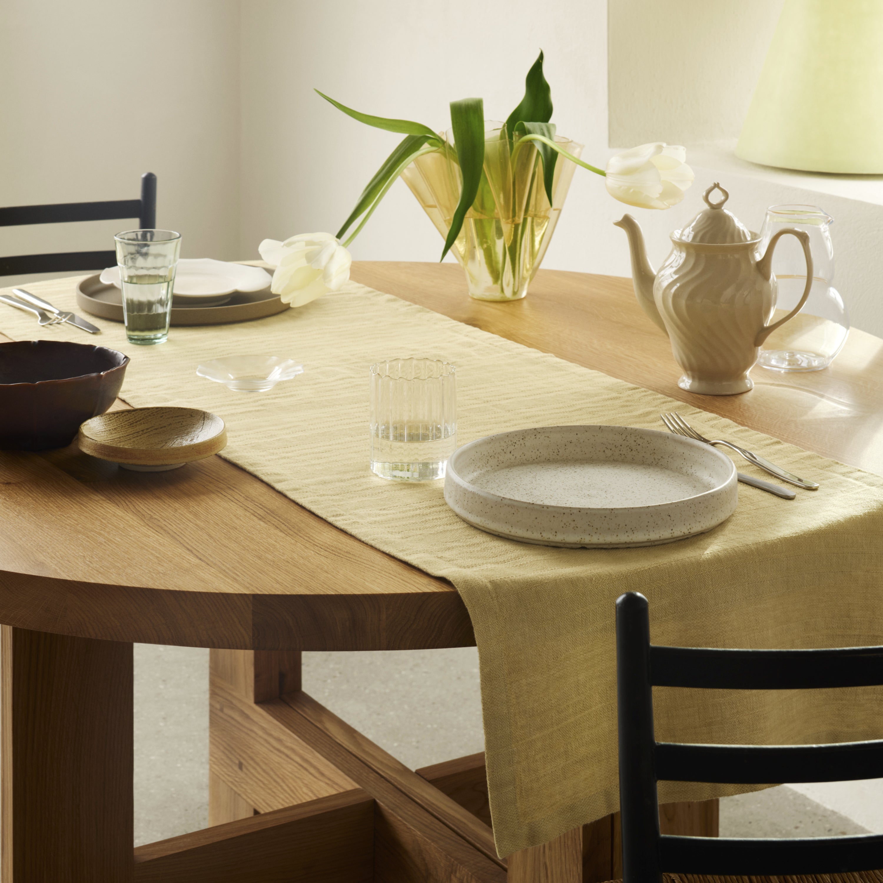 Wheat er en lys korngul farve, som tilføjer et stemningsfuldt udtryk til borddækningen. Den stribede vævning understreges af den fine gule farve.