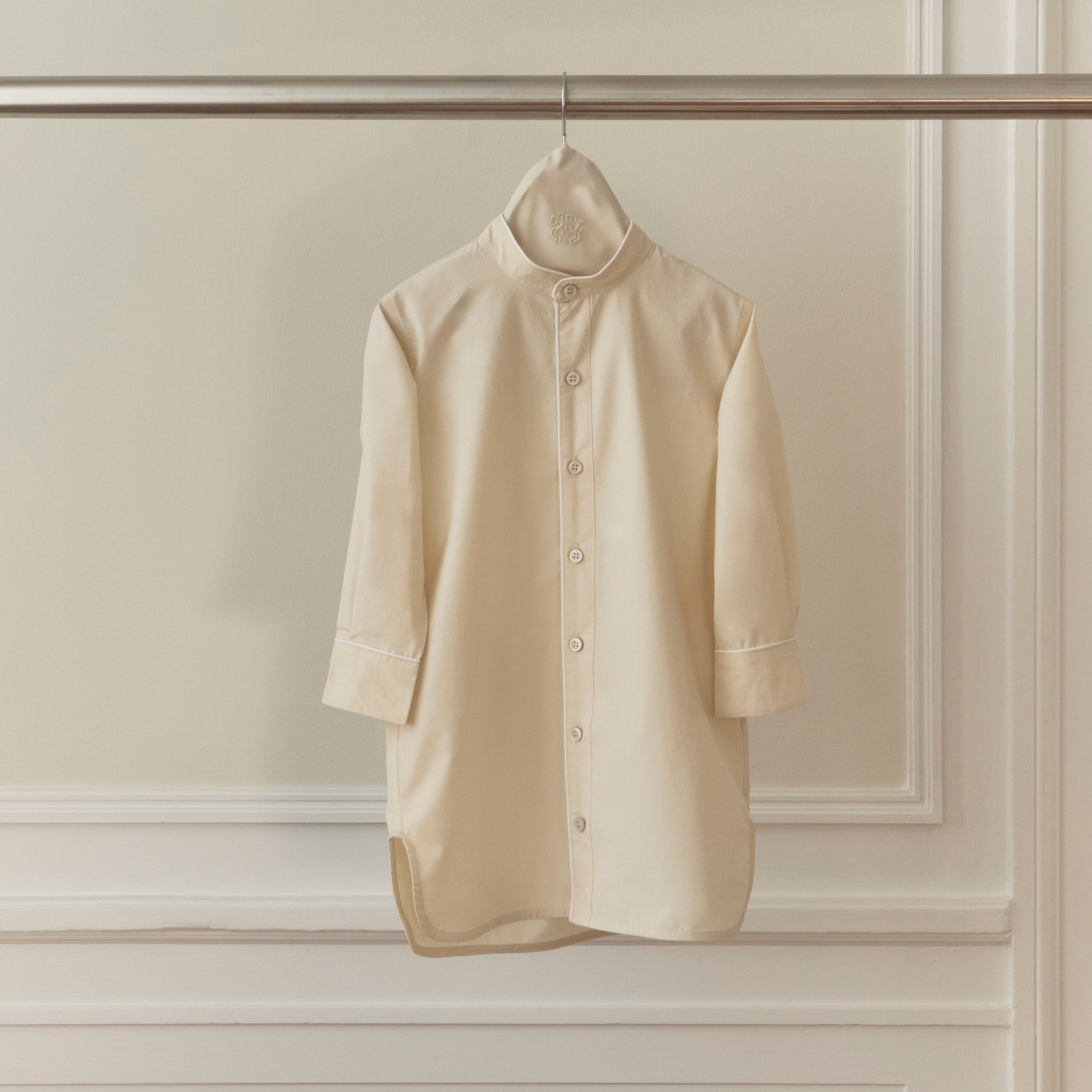 Skjortekjole til børn percalevævet i supimabomuld. Archive Linen er en lys beige farve med referencer til linned fra vores århundreder gamle arkiv.