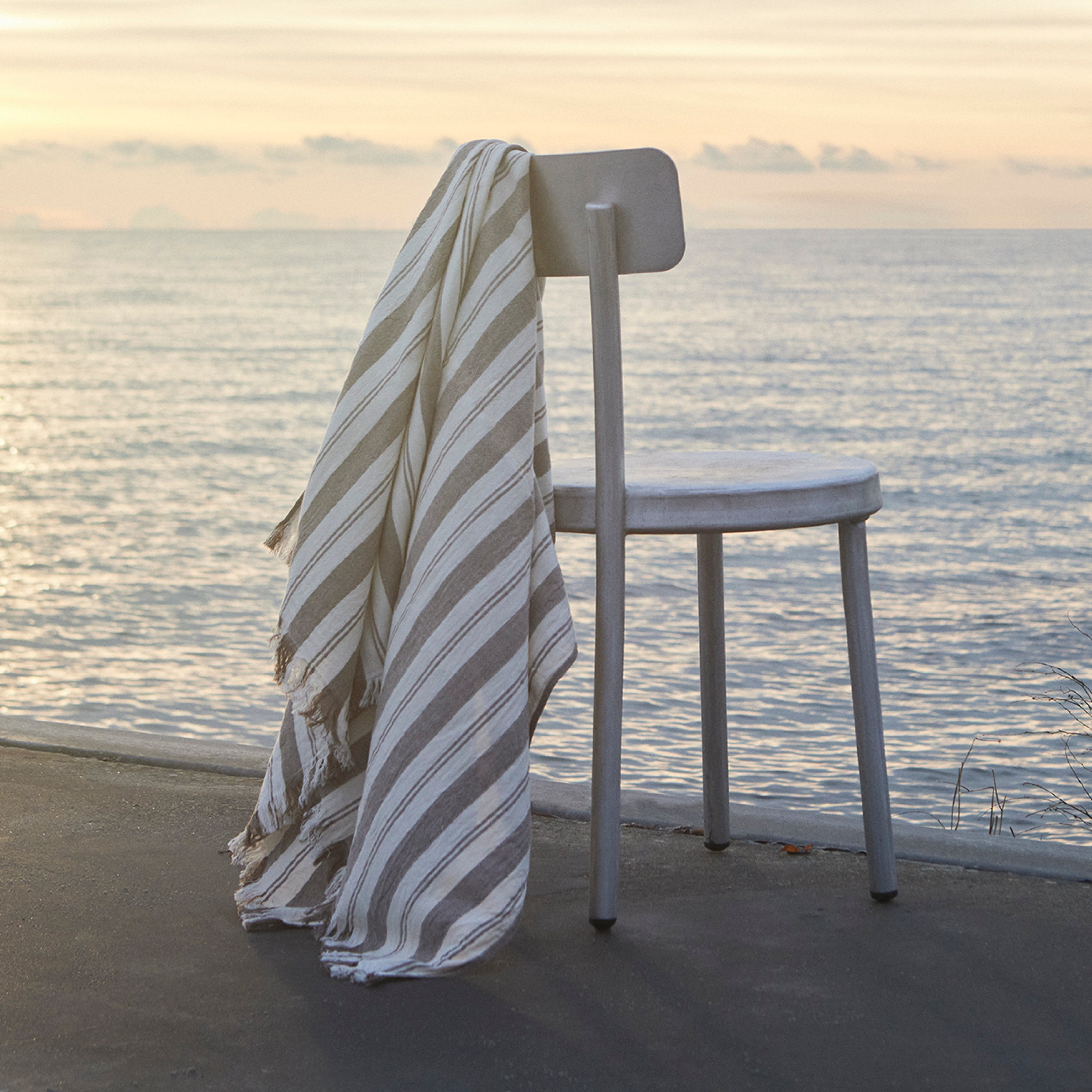 Paket mit 2 Strand-Badetüchern. Die klassischen Strand-Badetücher mit braunen Streifen sind aus 100 % Baumwolle gewebt. Die Badetücher sind perfekt für die Tasche, da sie wenig Platz benötigen und schnell trocknen.
