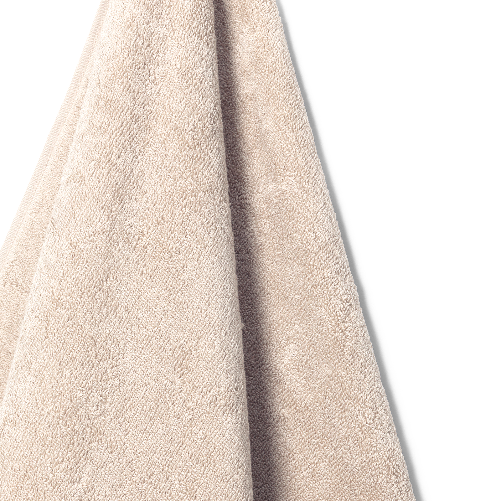 Packung mit 2 Damask Terry-Handtüchern in der Farbe Cashmere – ein dezenter Braunton von Grau, inspiriert von der Naturfarbe der Kaschmirziegenwolle.