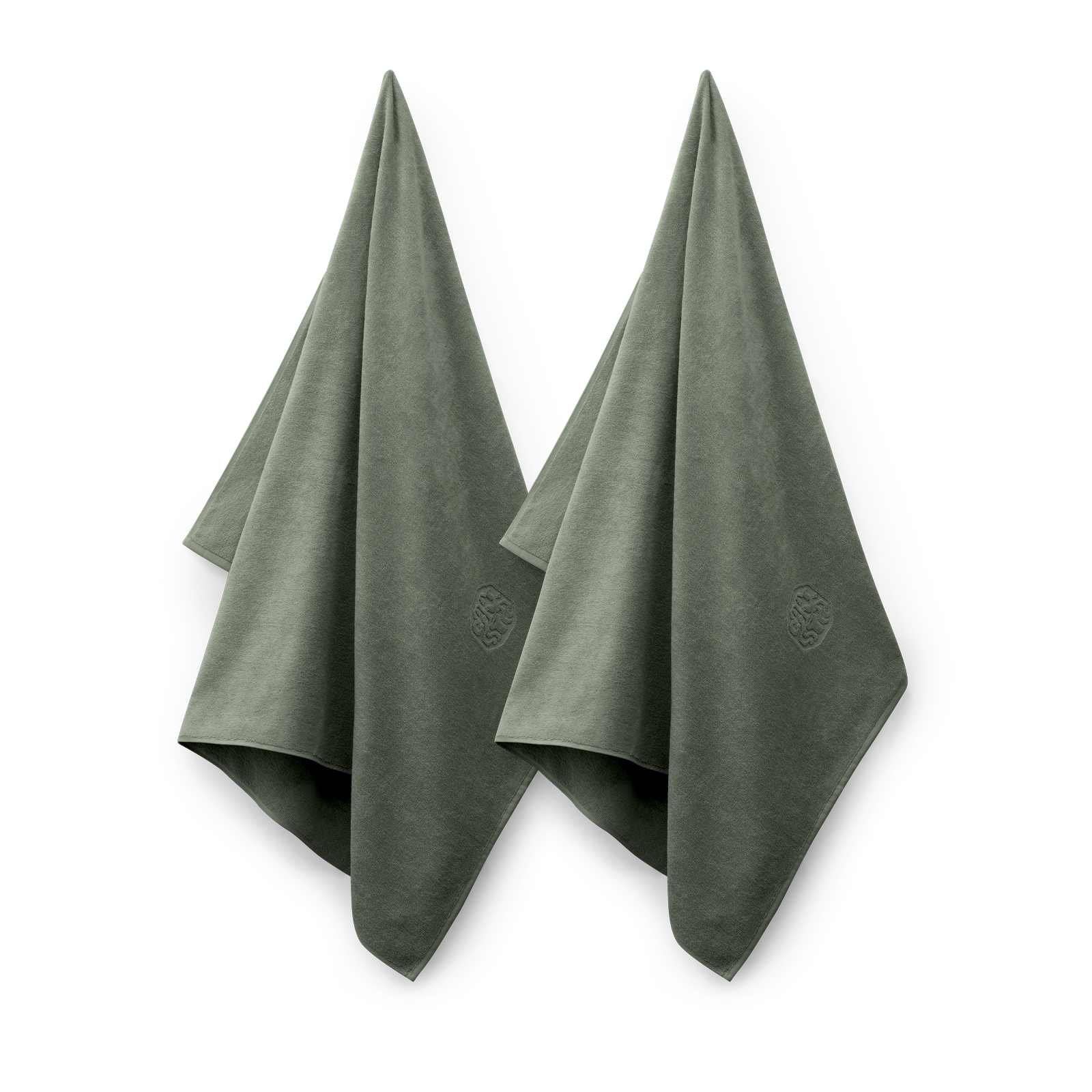 Paket mit zwei Damask Terry Badelaken in der Farbe Mineral Green – ein schöner, gedämpfter Grünton.