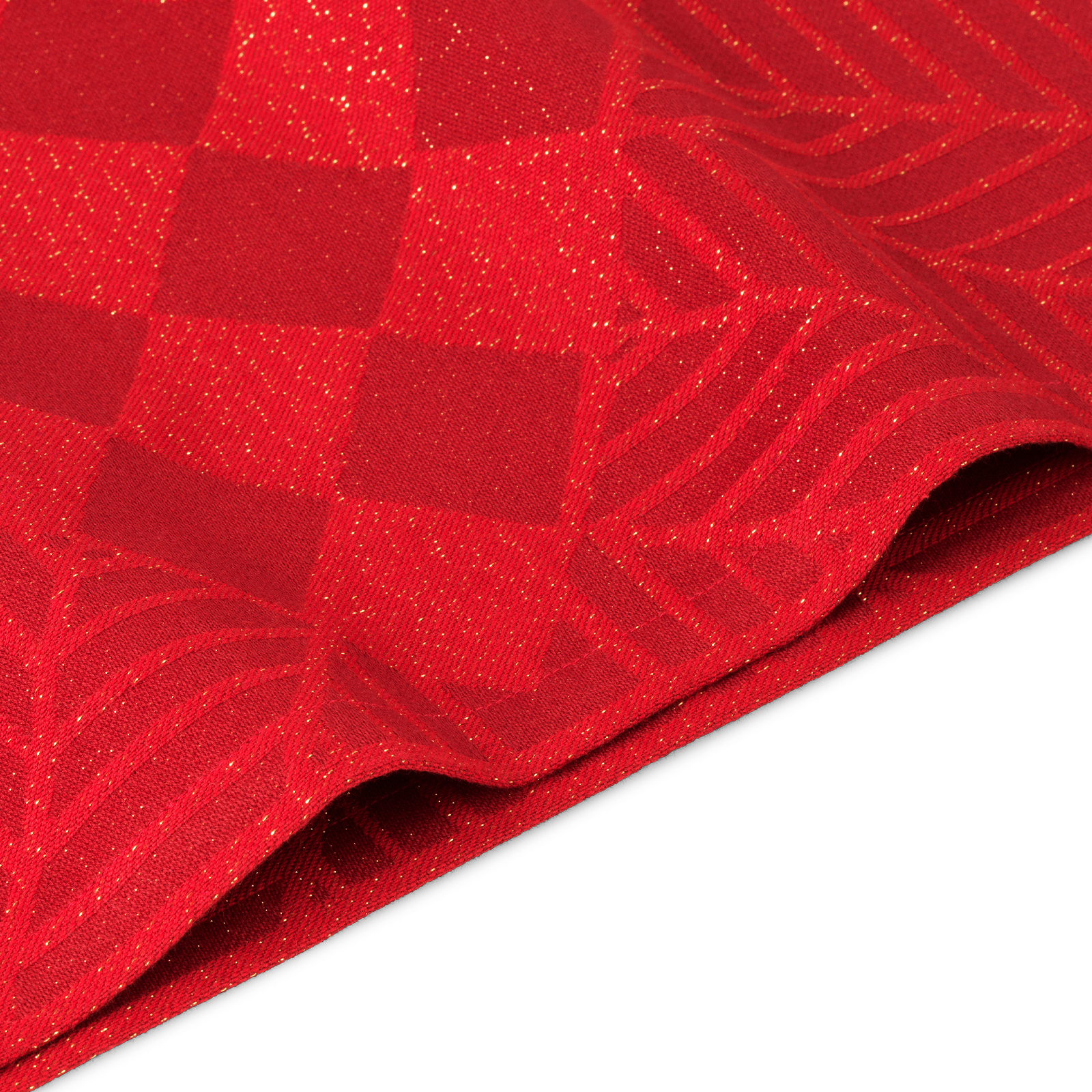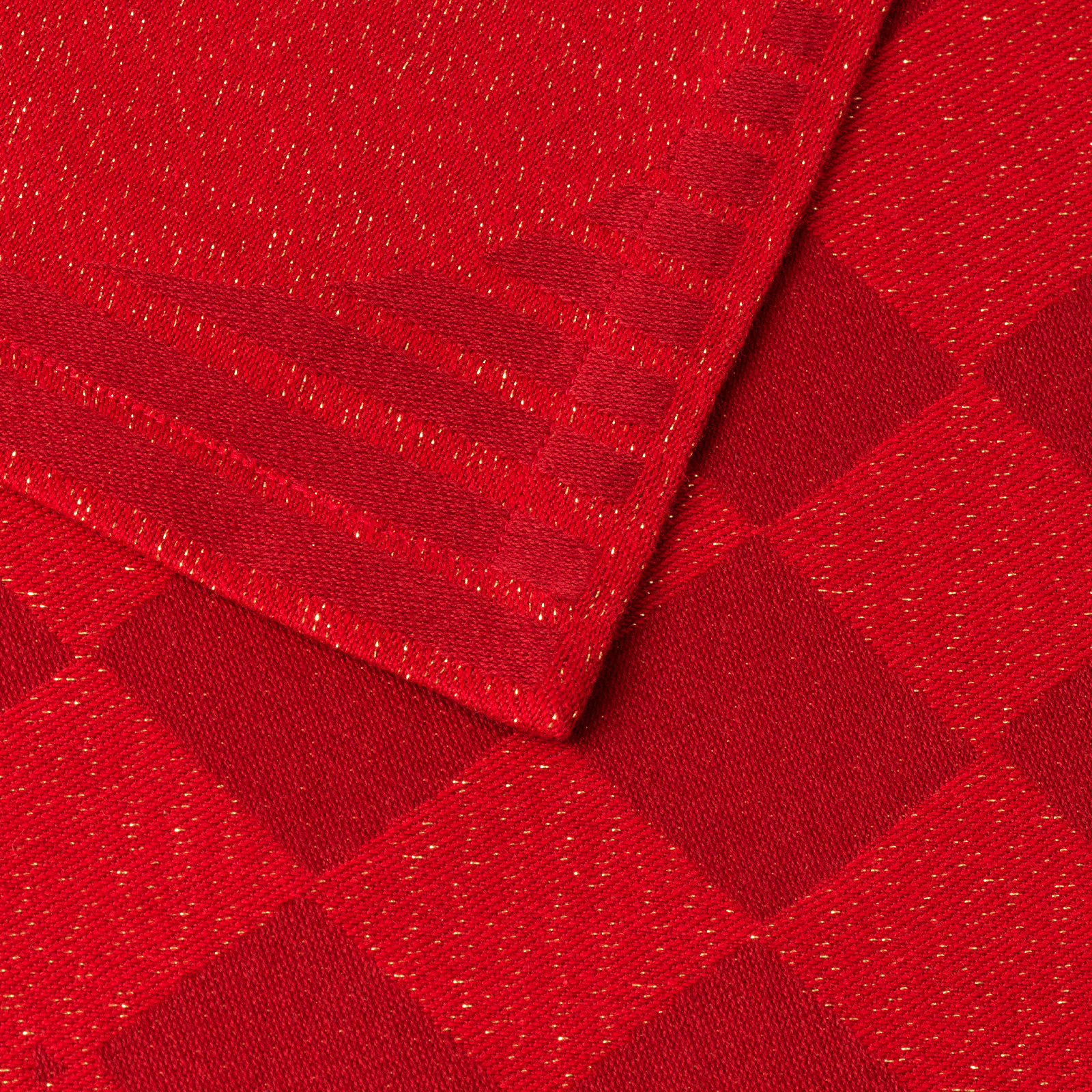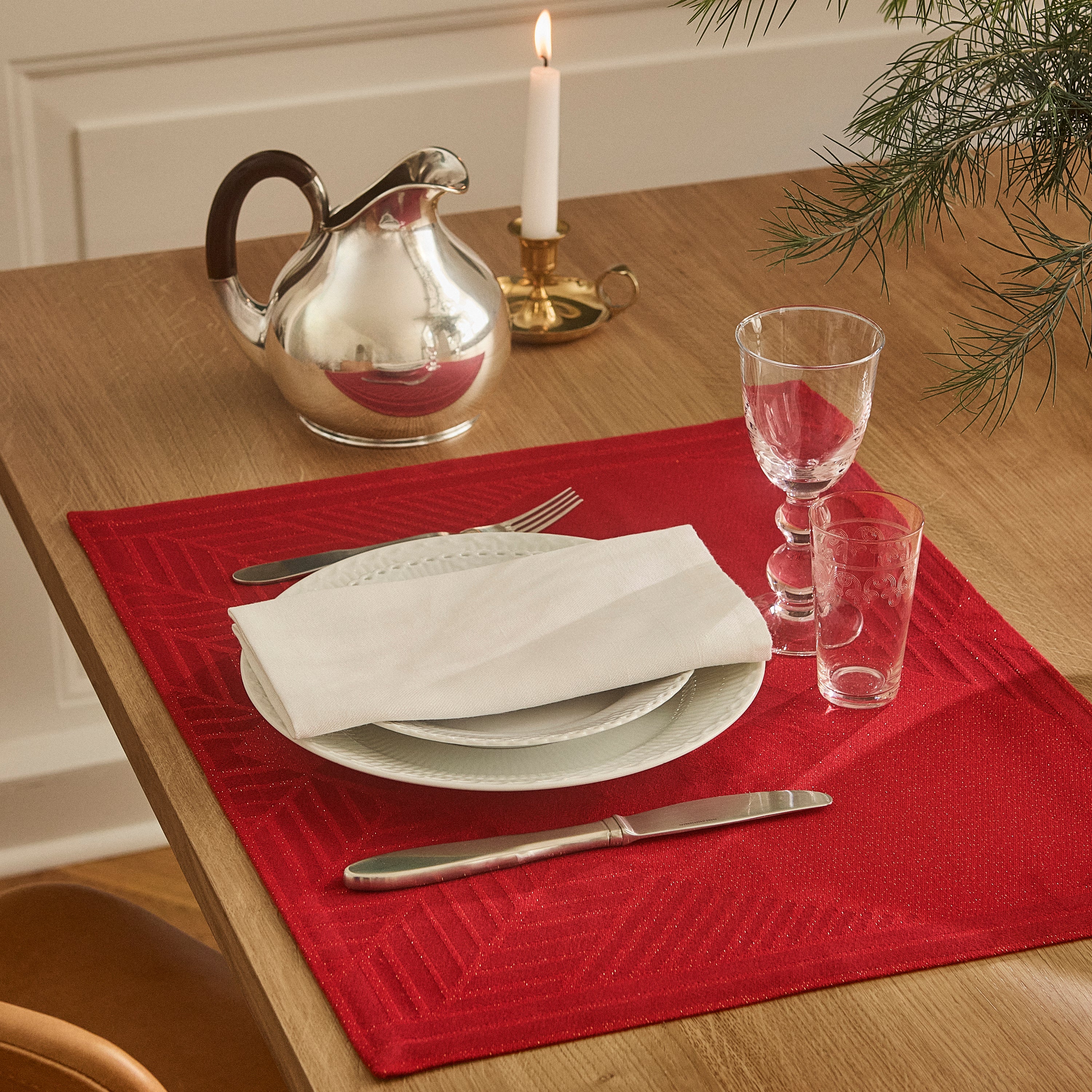 Georg Jensen Damask feiert das 50-jährige Jubiläum des Weihnachtsdesigns mit einem funkelnden Akzent auf dem ikonischen Motiv. Das Tischset, Christmas Rustic 50, in der Farbe Gold Red, ist aus feiner tiefroter Baumwolle mit goldenen, metallischen Fäden gewebt.