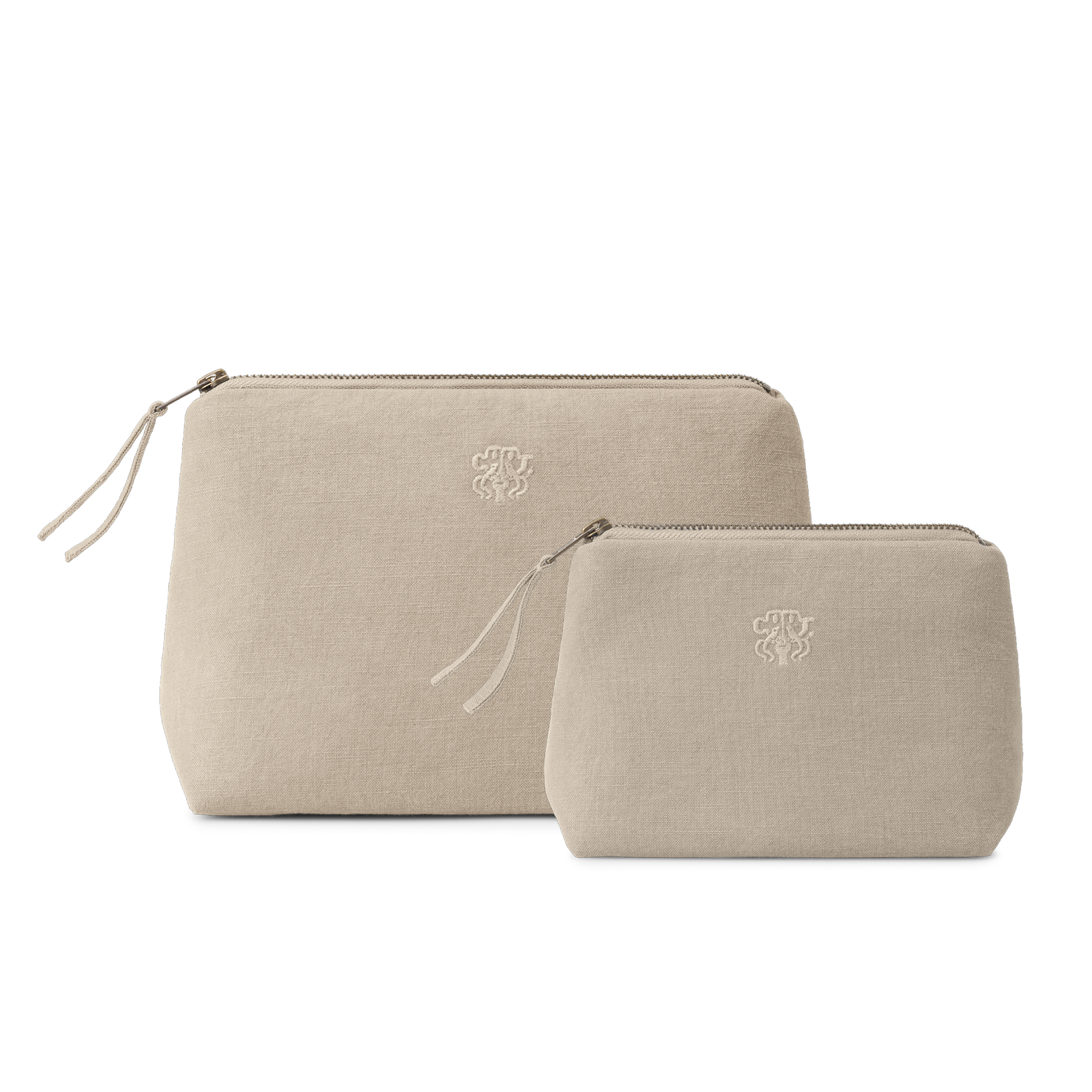 Die funktionelle und geräumige Kulturbeutel und Kosmetiktasche sind in Canvasbindung aus 100 % Baumwolle gewebt, verfügen über eine Innentasche und tragen das gestickte Logo von Georg Jensen Damask als elegantes Detail.