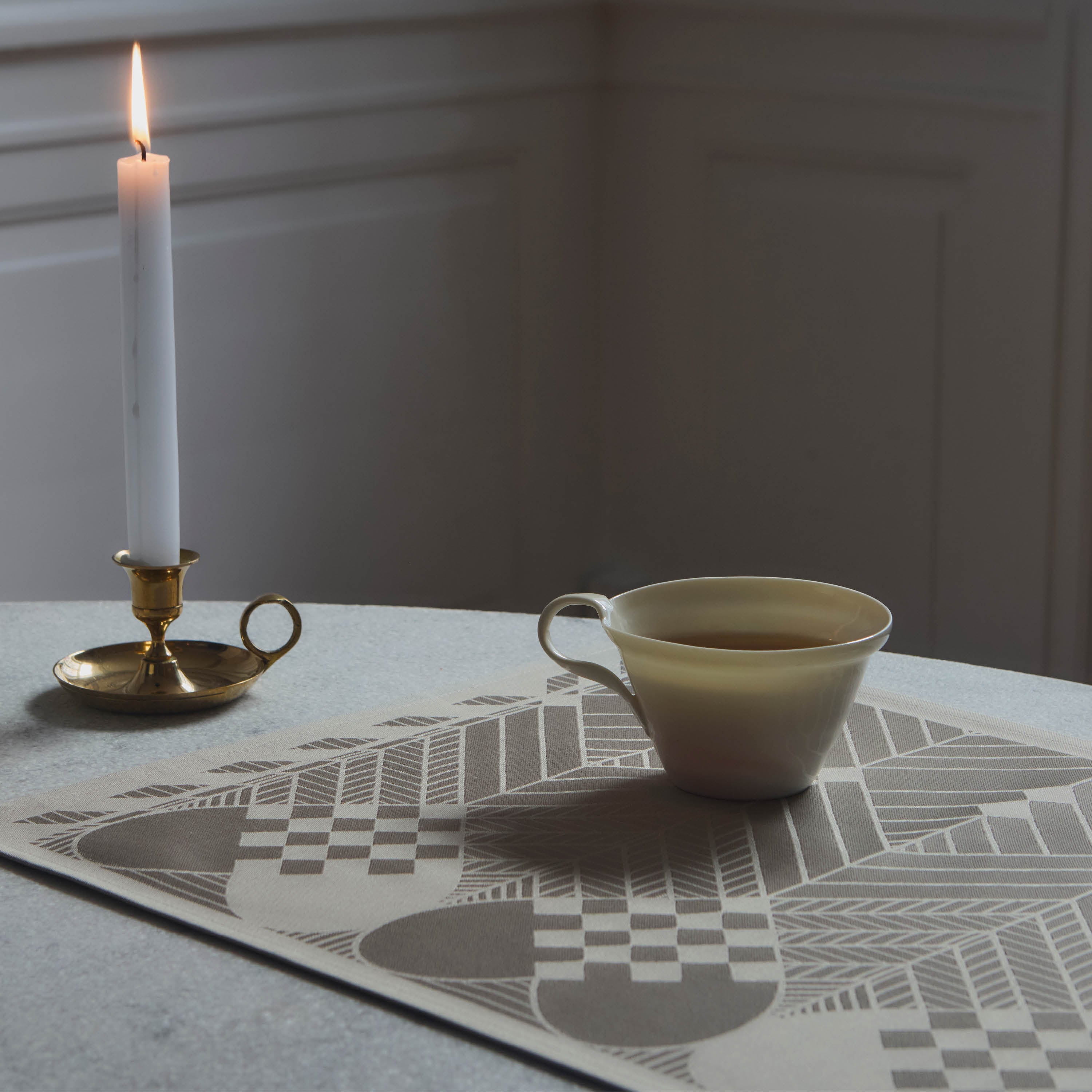 Das 1975 von der Textilkünstlerin Bodil Bødtker-Næss geschaffene Christmas-Tischset mit seinem stimmungsvollen Motiv aus hübschen, geflochtenen Weihnachtsherzen und stilisierten Tannenzweigen stellt heute eines der charakteristischen Designs in der Kollektion von Georg Jensen Damask dar. Inspiriert von der glatten, graubraunen Rinde alter Haselnussbäume hat die elegante Farbe des Tischsets den Namen Hazel Wood erhalten.