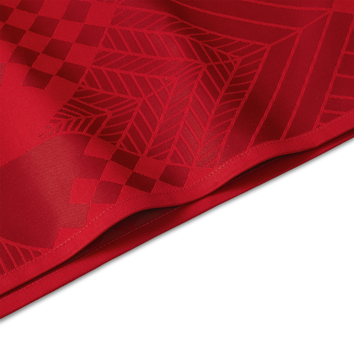 Die dunkelrote Version der gewebten Ton-in-Ton-Nuancen mit den typischen Weihnachtsfarben macht den Tischläufer zu einem klassischen und stilvollen Blickfang. Sie werden merken, wie sich Weihnachtsstimmung breitmacht, wenn Sie diesen Tischläufer auf den Tisch legen. Die dazu passenden Stoffservietten runden das Bild noch ab.