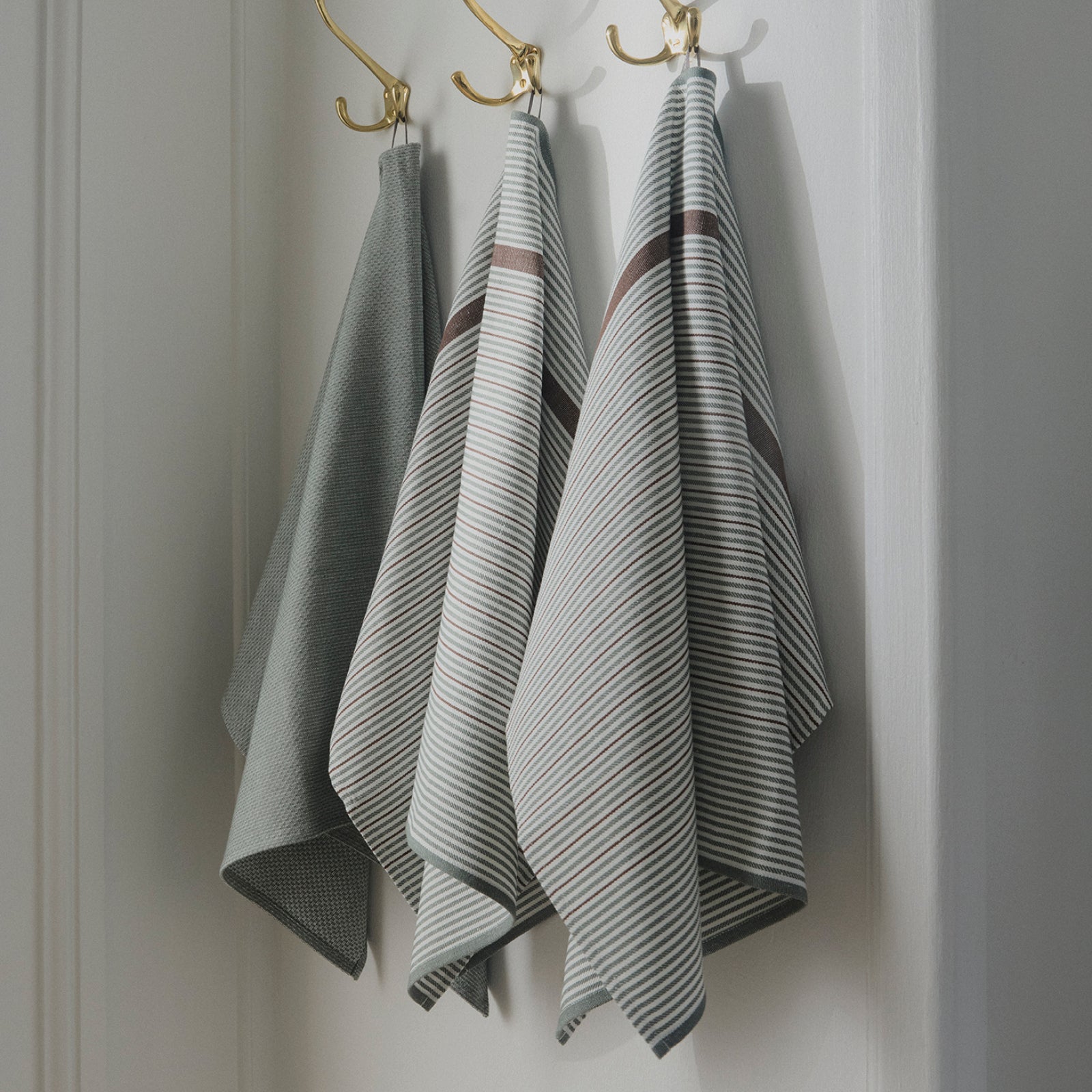 Der Weber, Designer und Textilingenieur Bent Georg Jensen legte in seiner langjährigen Arbeit großen Wert auf die Verbindung von Qualität, Funktion und Design. Dies spiegelt sich auch in dem schlichten Geschirrtuch Comet wider, das in der Küche praktisch und schön zugleich ist und ein wichtiges Stück der renommierten Kollektion klassischer Heimtextilien von Georg Jensen Damask darstellt. Bei der Farbe Mineral Green handelt es sich um einen hellgrünen Frühlingsboten, der sich durch die gesamte Kollektion zieht und beim Geschirrtuch Comet durch einen schmalen hellbraunen Streifen ergänzt wird.