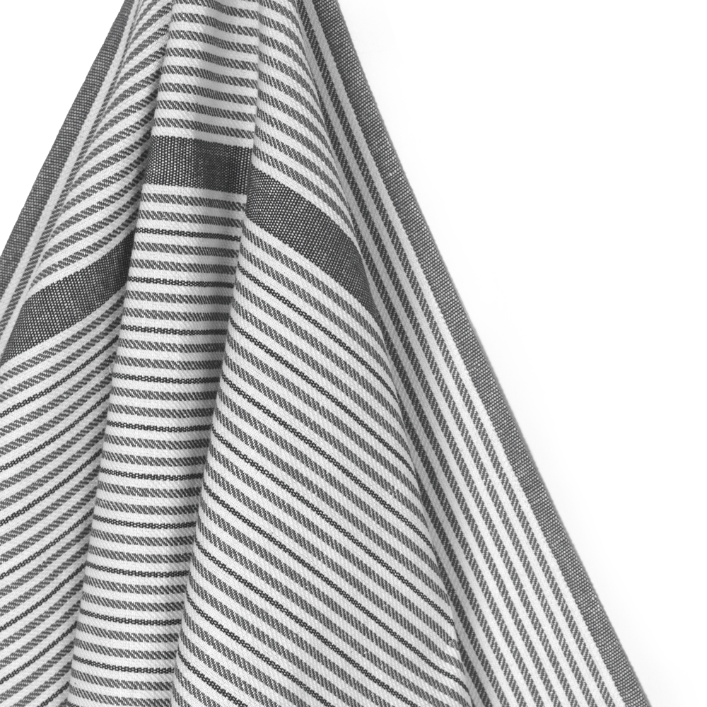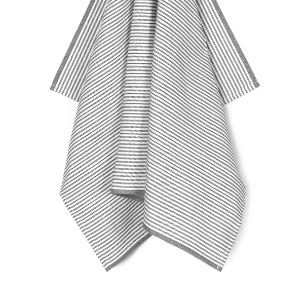 Comet ist ein schlichtes gestreiftes Geschirrtuch, gewebt aus einer Mischung aus Baumwolle und Leinen, wodurch es sich ideal zum Abtrocknen eignet. Die Farbkombination Dark Grey ist zeitlos und passt zu fast jeder Küche.