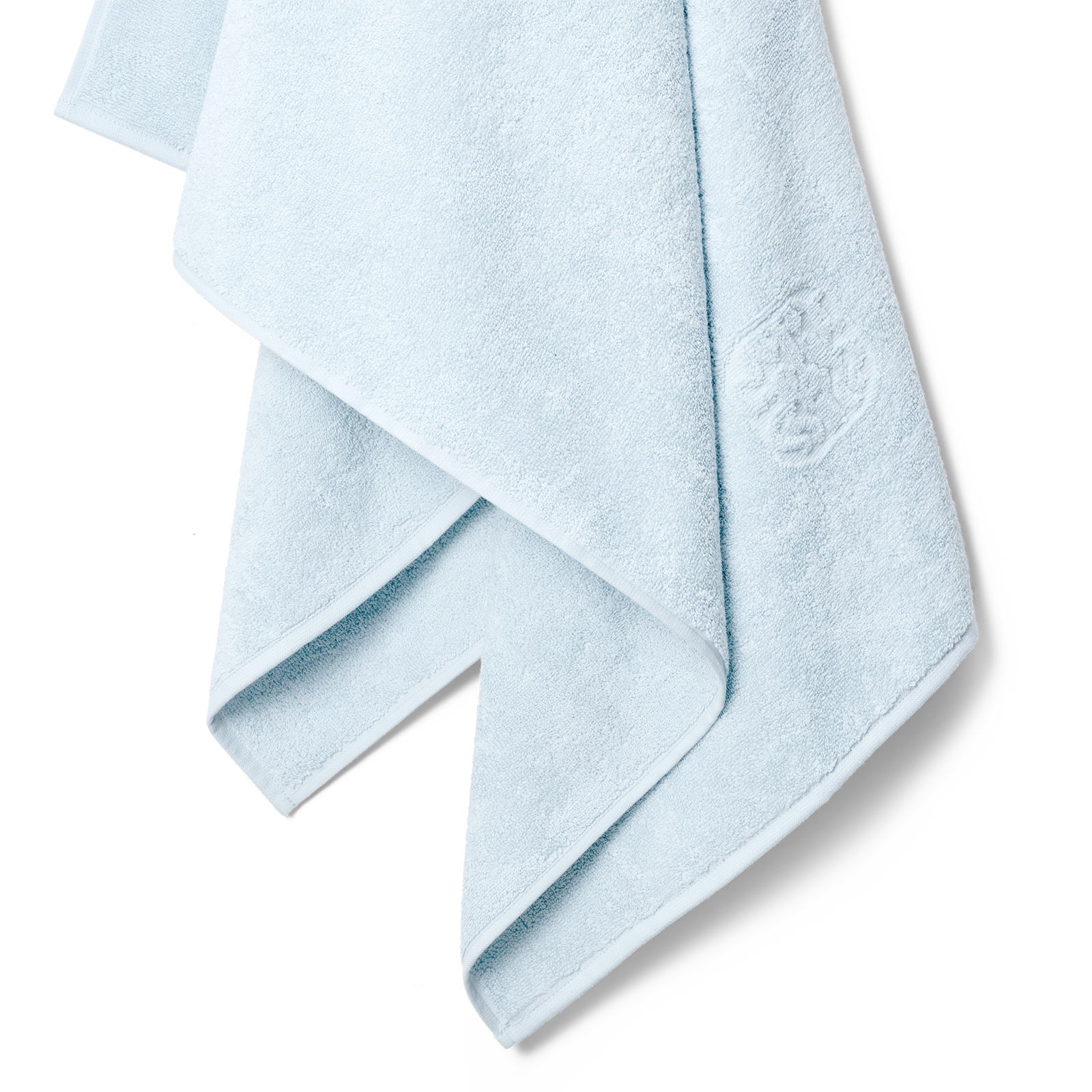 Das Damask Terry Badehantuch hat ein schlichtes Design mit dem ikonischen Georg Jensen Damask-Logo als elegantes Detail eingewebt. Minimal Blue ist ein sehr heller Blauton mit einem Hauch von Aqua.