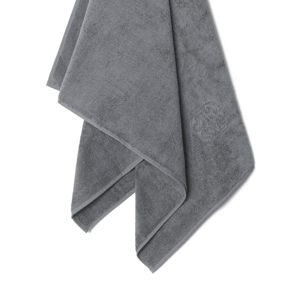 Exklusives dunkelgraues Badehandtuch aus 100% Baumwollfrottee von höchster Qualität verkörpert Wohlbefinden für Körper und Seele. Ein Luxus, den die ganze Familie genießen wird und es kann auch zu einem Teil der Einrichtung werden, wenn es dekorativ gerollt oder in en regal gestapelt wird.