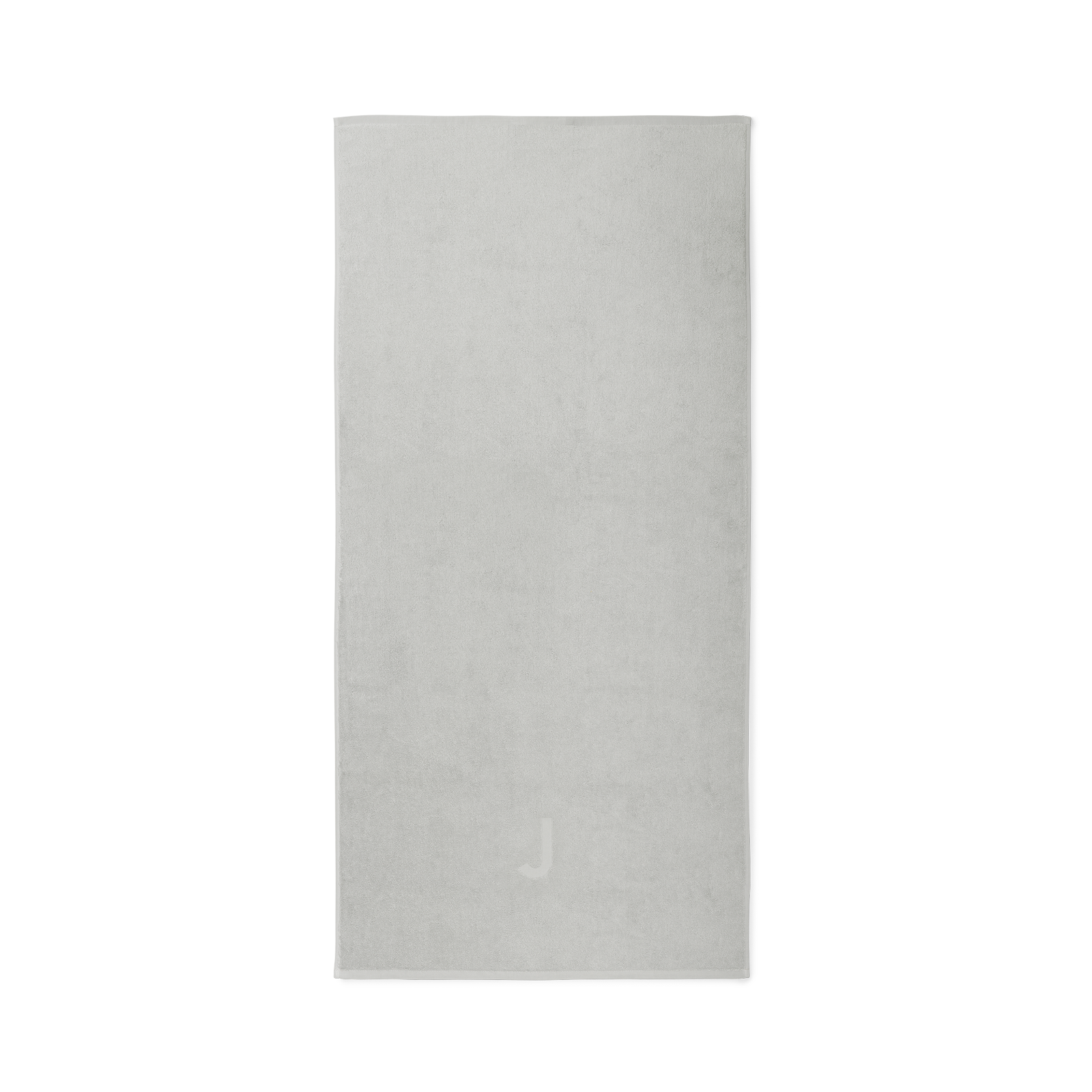 Damast-Frottier-Badehandtuch mit eingewebtem Buchstaben J. Das Handtuch ist aus 100 % doppelt gezwirnter, gekämmter Baumwolle jacquardgewebt, mit dem Buchstaben im Relief. Es ist weich, glänzend und strapazierfähig zugleich. Die elegante Farbe Platinum Grey ist ein heller und kühler Grauton.