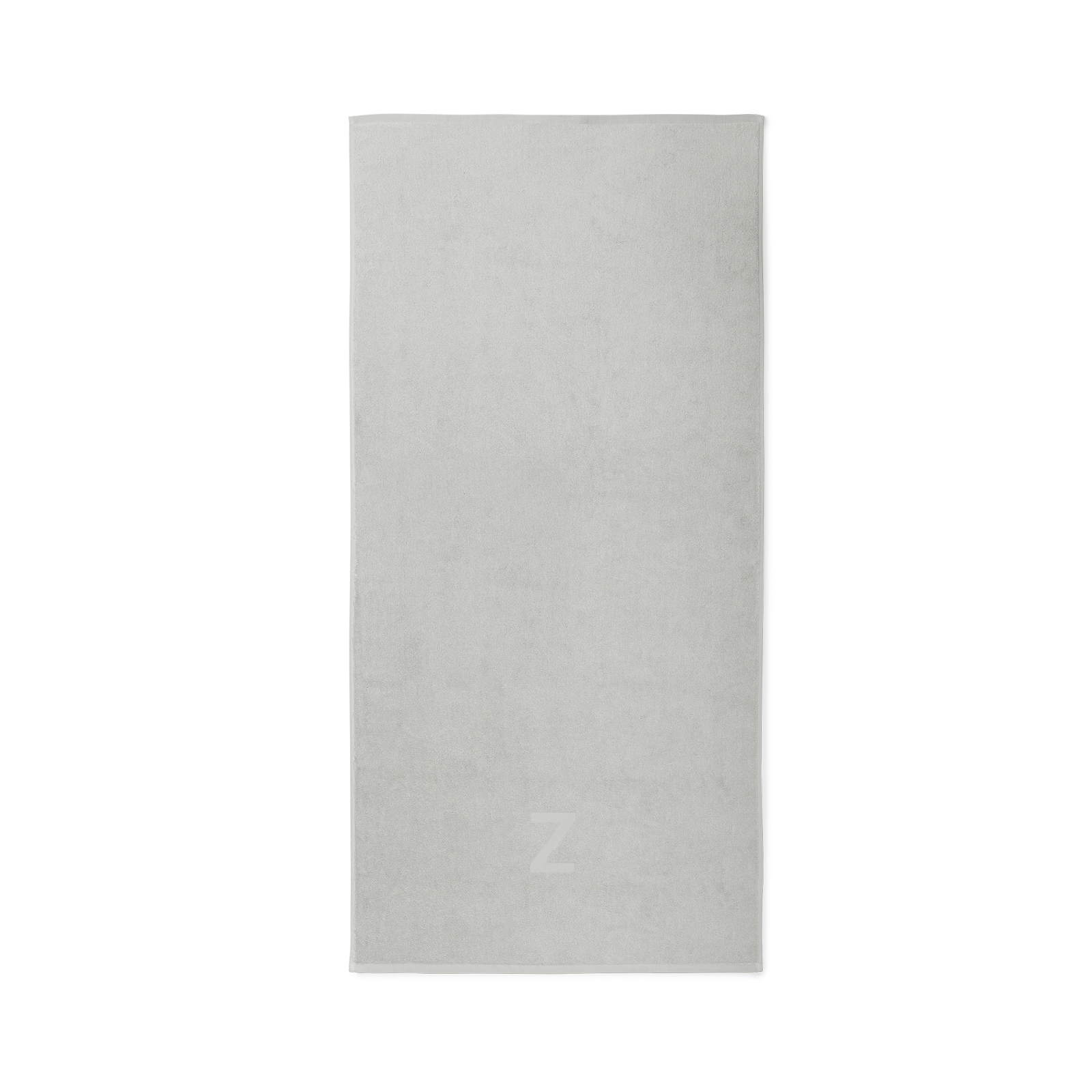 Damast-Frottier-Badehandtuch mit eingewebtem Buchstaben Z. Das Handtuch ist aus 100 % doppelt gezwirnter, gekämmter Baumwolle jacquardgewebt, mit dem Buchstaben im Relief. Es ist weich, glänzend und strapazierfähig zugleich. Die elegante Farbe Platinum Grey ist ein heller und kühler Grauton.