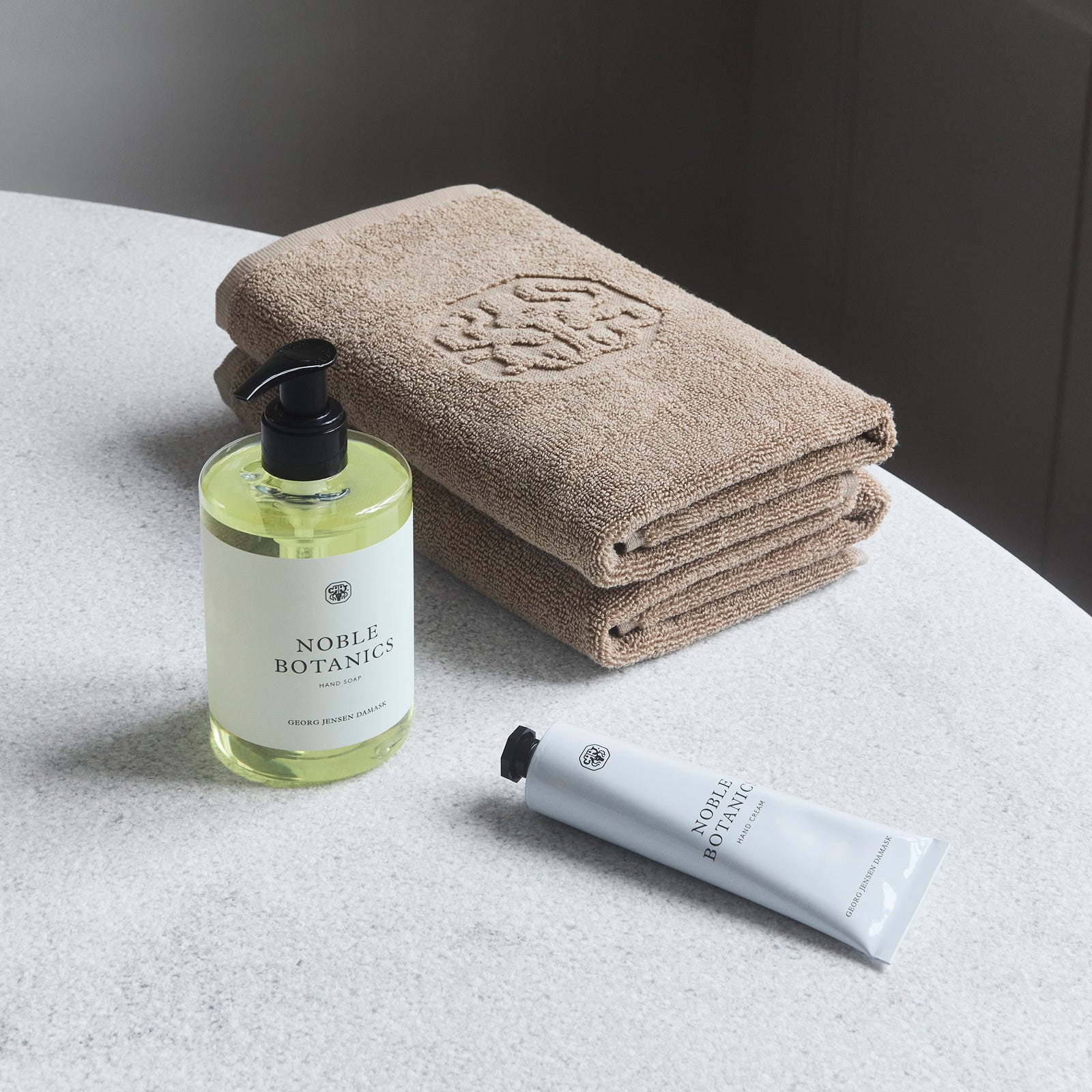 Damask Terry ist auch als Badehandtuch, Handtuch, Gästetuch und Badematte erhältlich.