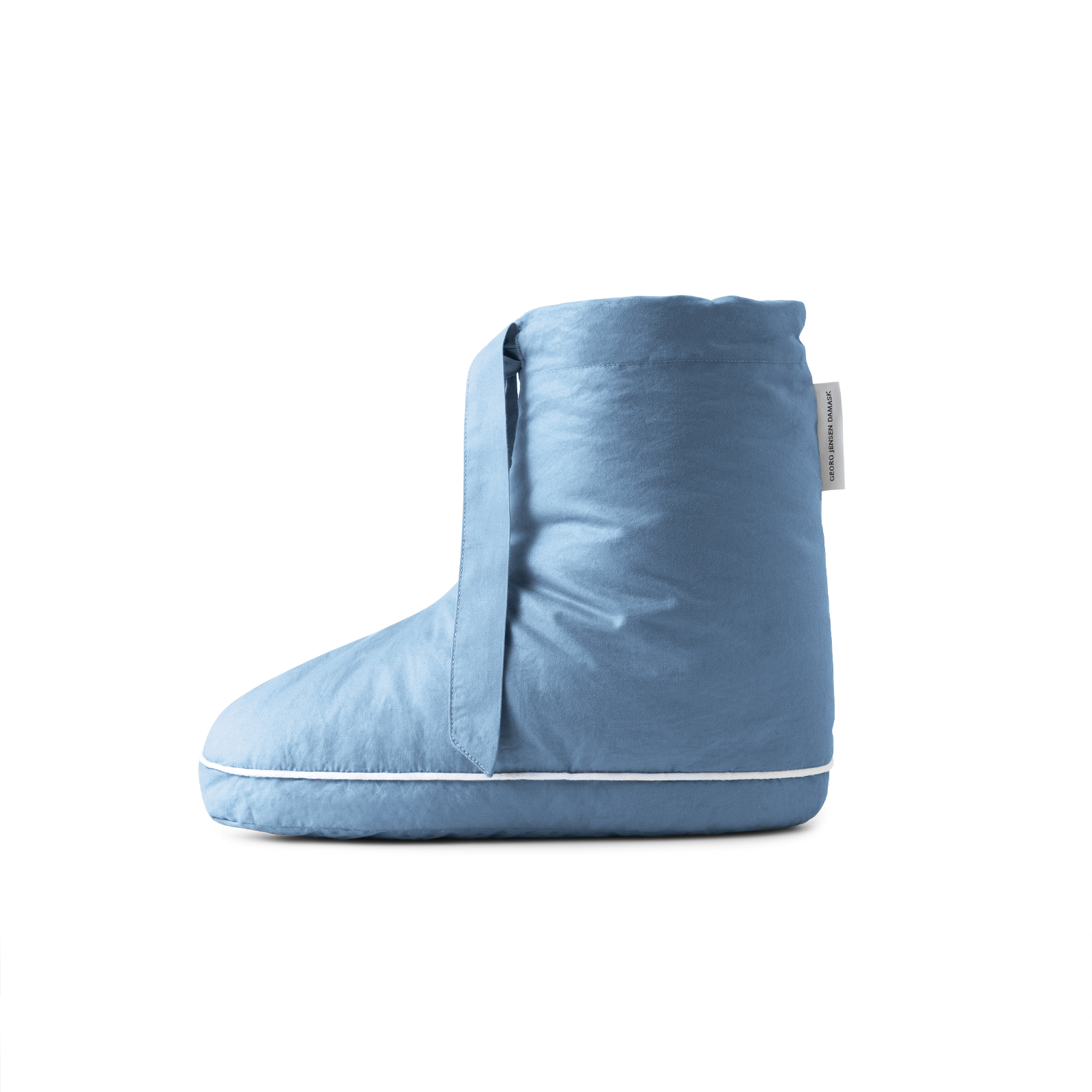 Weiche und warme Daunensocken mit eleganter Paspel und Bindeband am Knöchel. Die Cloud Daunensocken sind aus 100 % Baumwolle satingewebt og gefüllt med luftigen og atmungsaktiven Entendaunen og Federn. Die Entendaunen og -federn sind GRS‑zertifiziert. Blue Hour ist ein schöner und zeitloser mittelblauer Farbton.