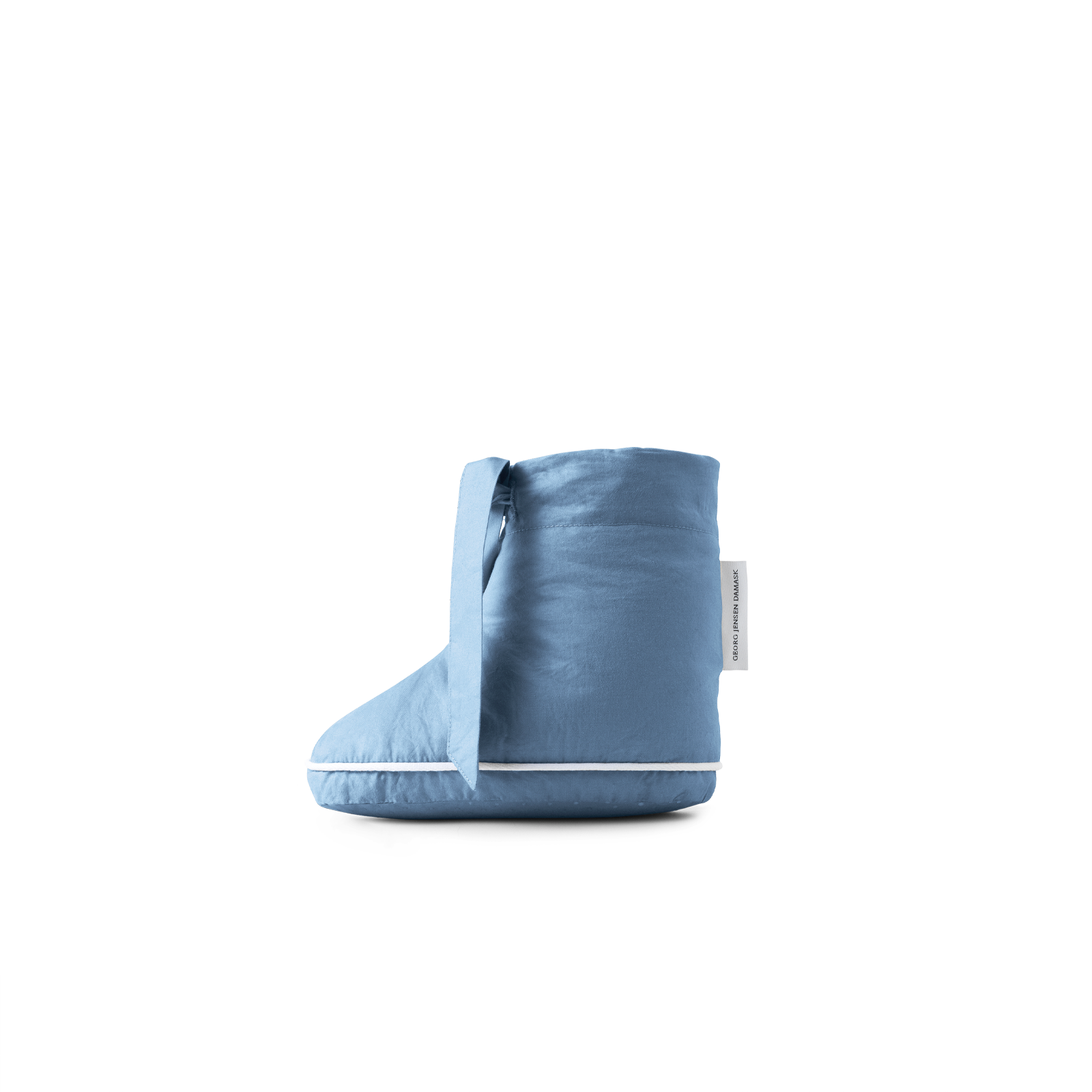 Weiche und warme Daunensocken für Kinder mit eleganter Paspel und Bindeband am Knöchel. Die Cloud‑Daunensocken sind aus 100 % Baumwolle satingewebt und mit luftigen, atmungsaktiven GRS‑zertifizierten Entendaunen und Federn gefüllt. Blue Hour ist ein schöner und zeitloser mittelblauer Farbton.
