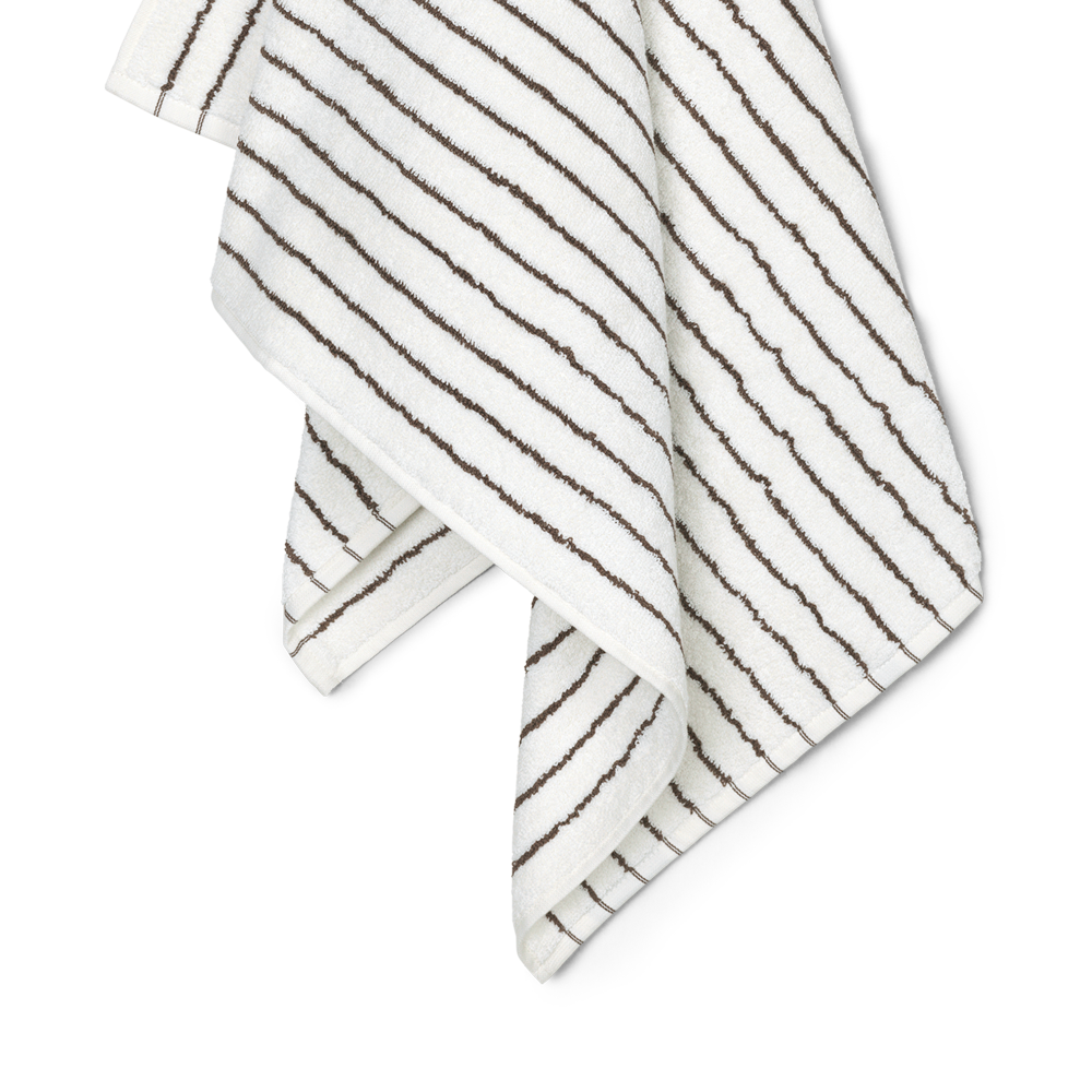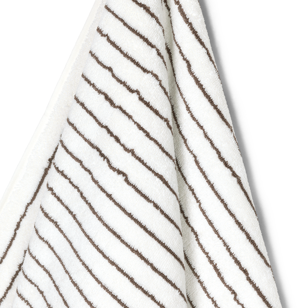 Die schmalen dunkelbraunen und weißen Streifen verleihen dem Handtuch einen modernen Look, der Schwung ins Badezimmer bringt. Kombinieren Sie es mit einfarbigen Handtüchern.