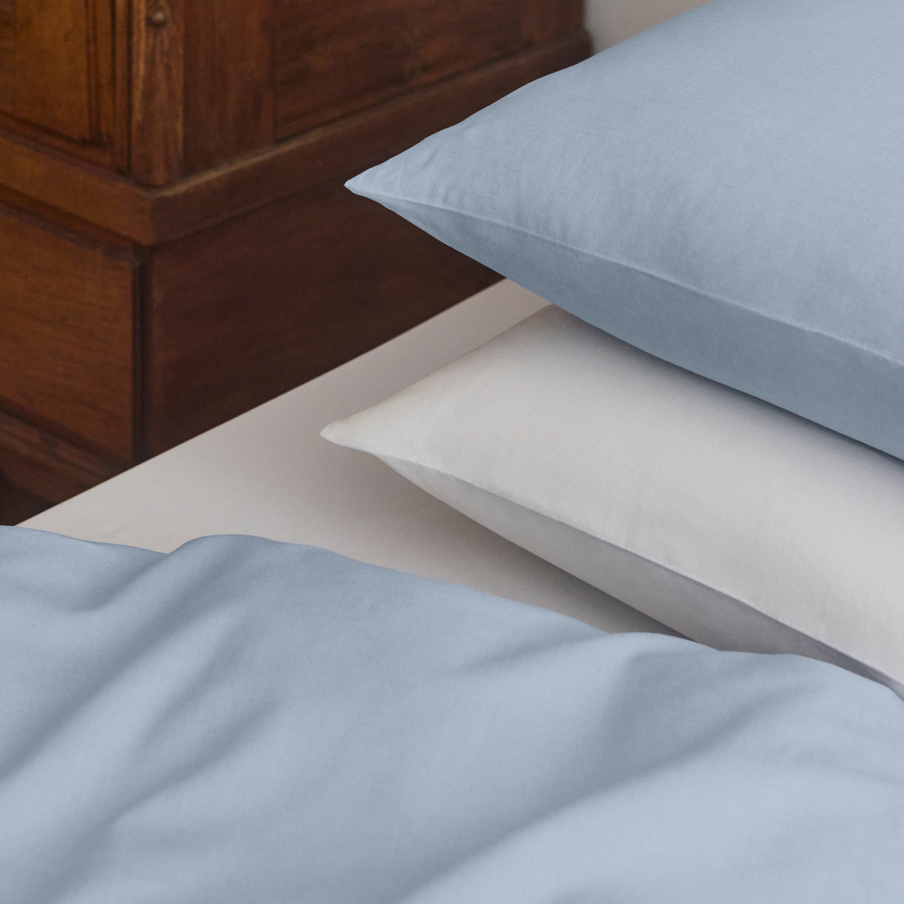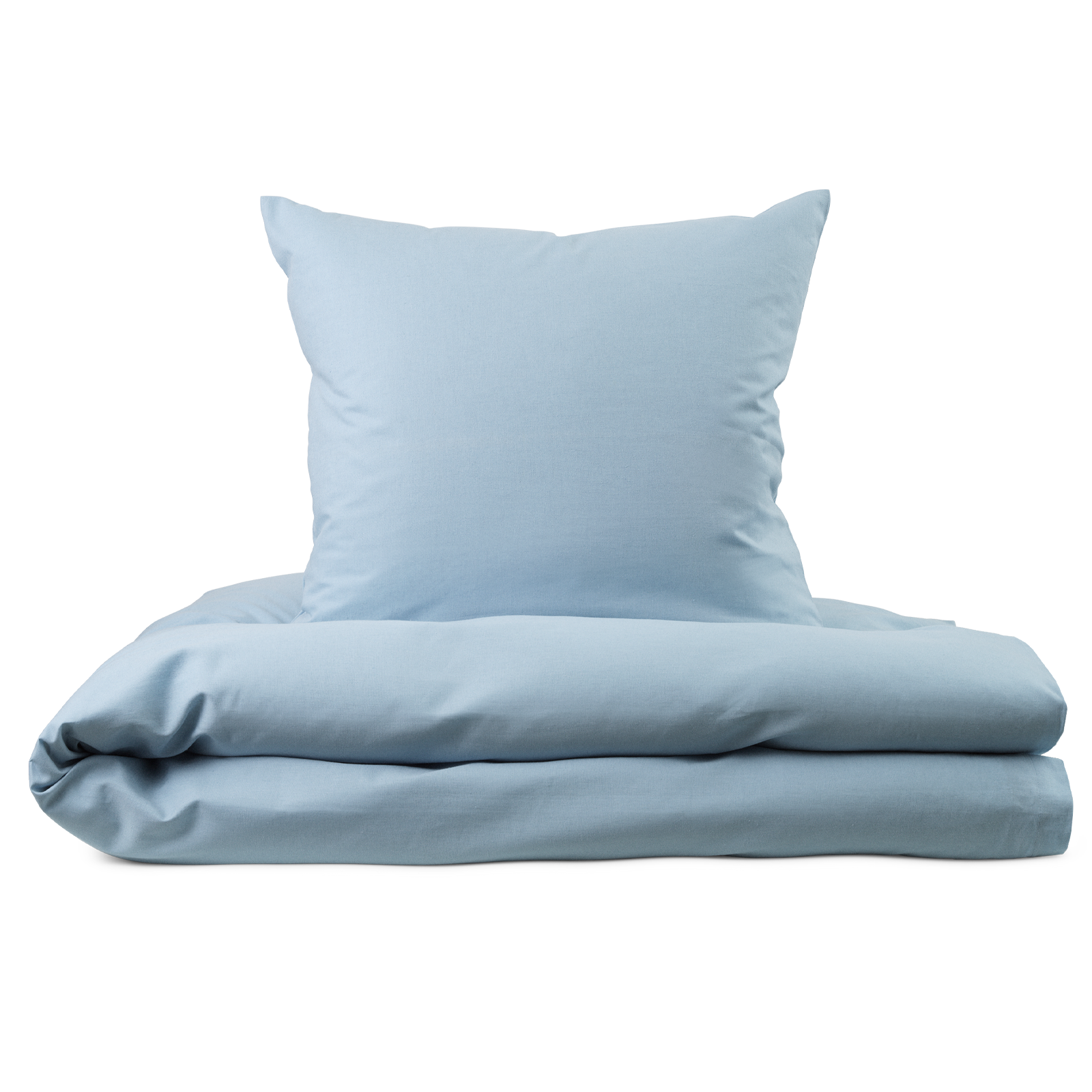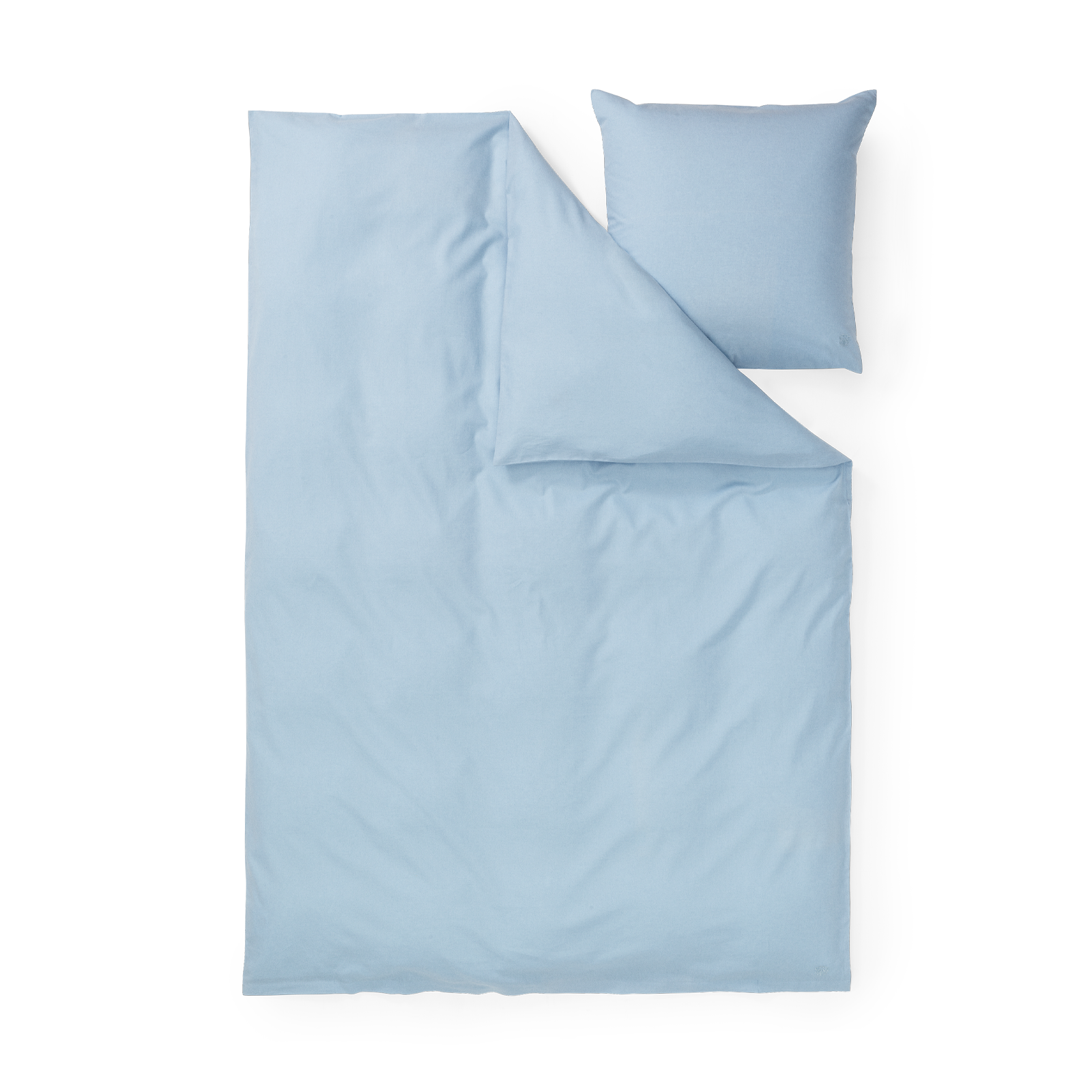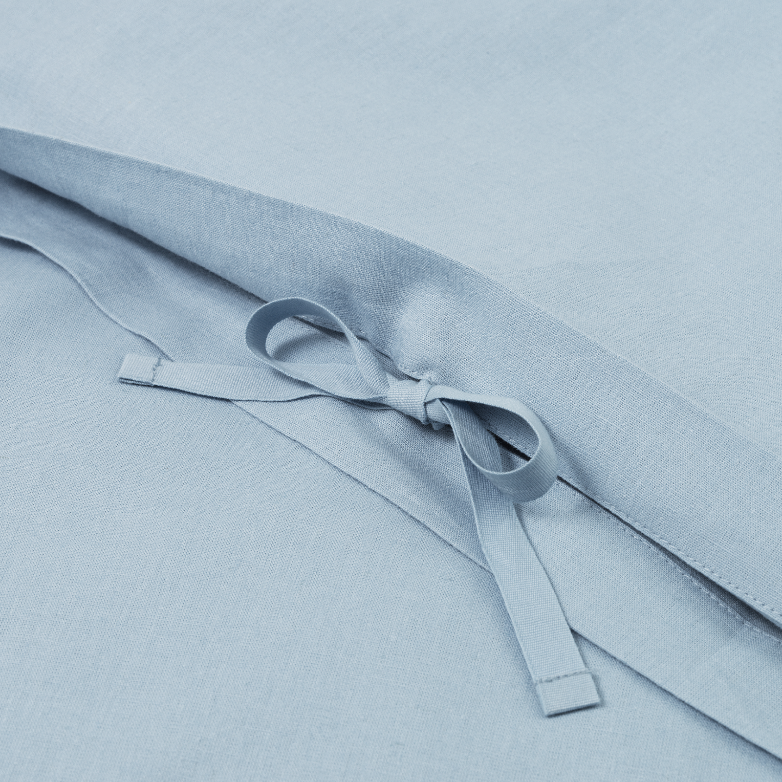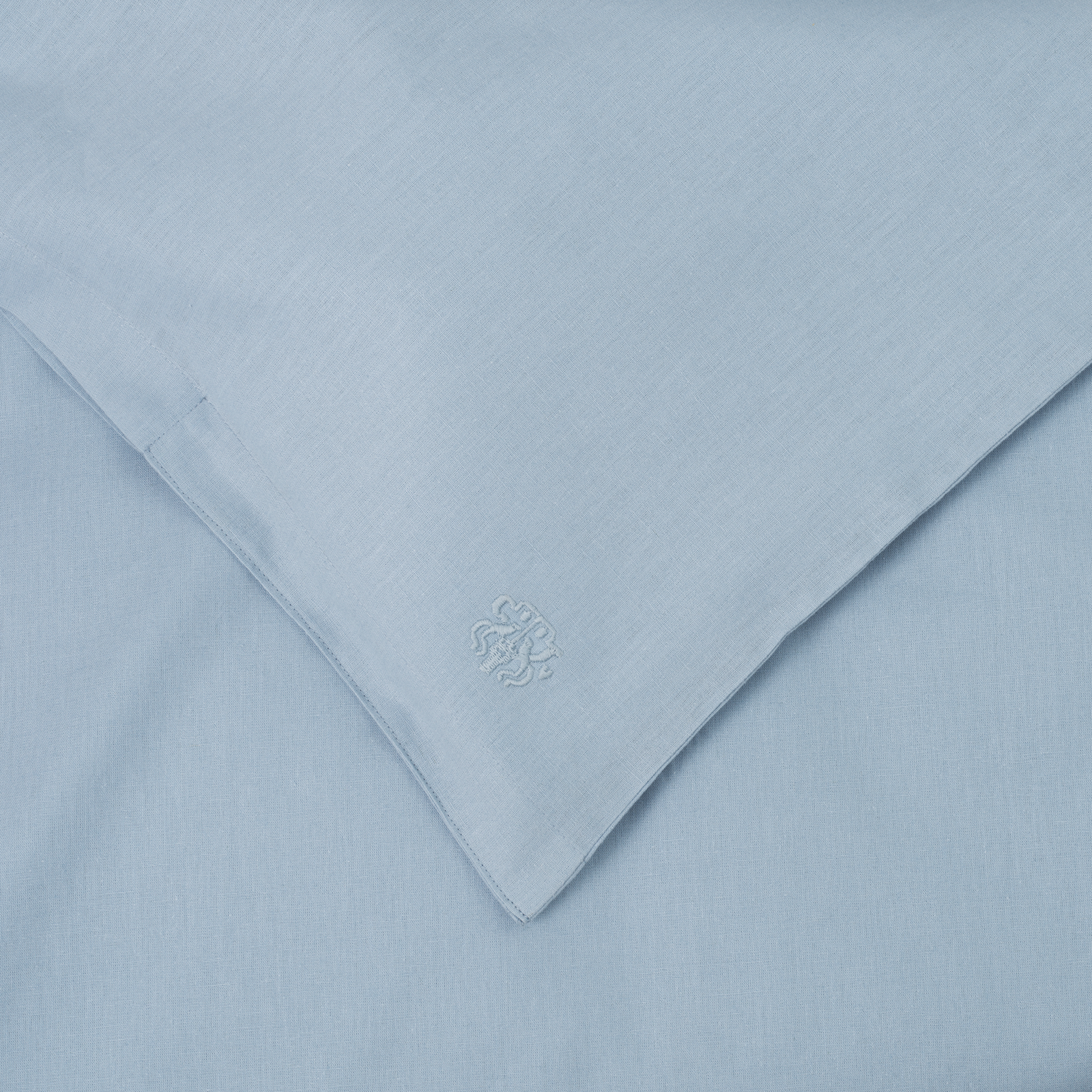 Die Even-Bettwäsche ist in Leinen und Baumwolle gewebt, um die besonderen Eigenschaften beider Materialien zu vereinen. Die natürliche Textur des Leinens kombiniert mit der Weichheit und Formstabilität der Baumwolle. Zusammen ergibt dies eine schöne, matte und weiche Oberfläche – sowie eine atmungsaktive und langlebige Bettwäsche. Die Farbe Blue Haze ist ein heller, pudriger Blauton.