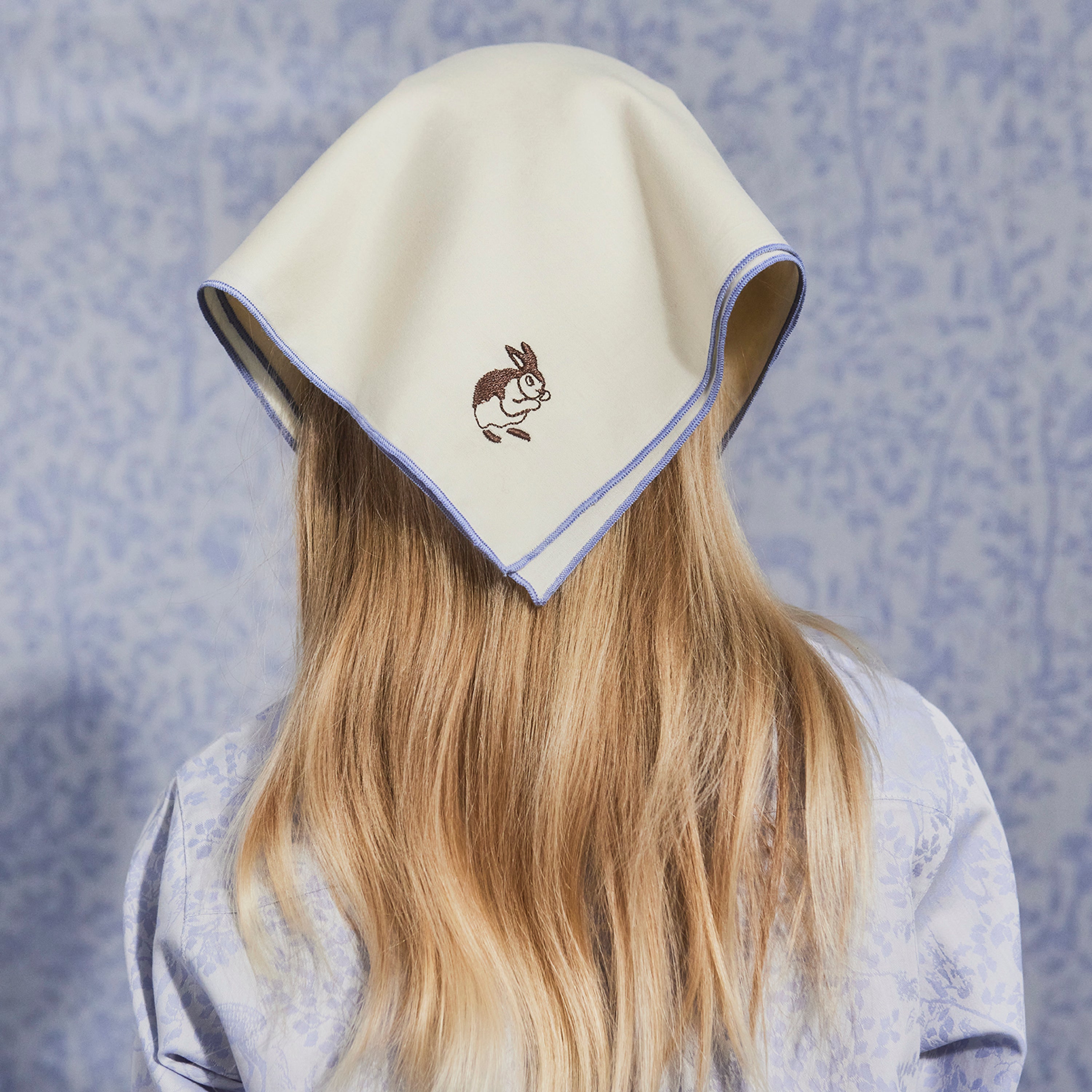 Dieser Kinderschal ist ein Spezialprodukt aus der Forest-Kinderkollektion, deren Motiv aus Kaninchen, Hirschen und Wald von einem Wandteppich aus dem 19. Jahrhundert stammt, der in den historischen Archiven von Georg Jensen Damask entdeckt wurde.