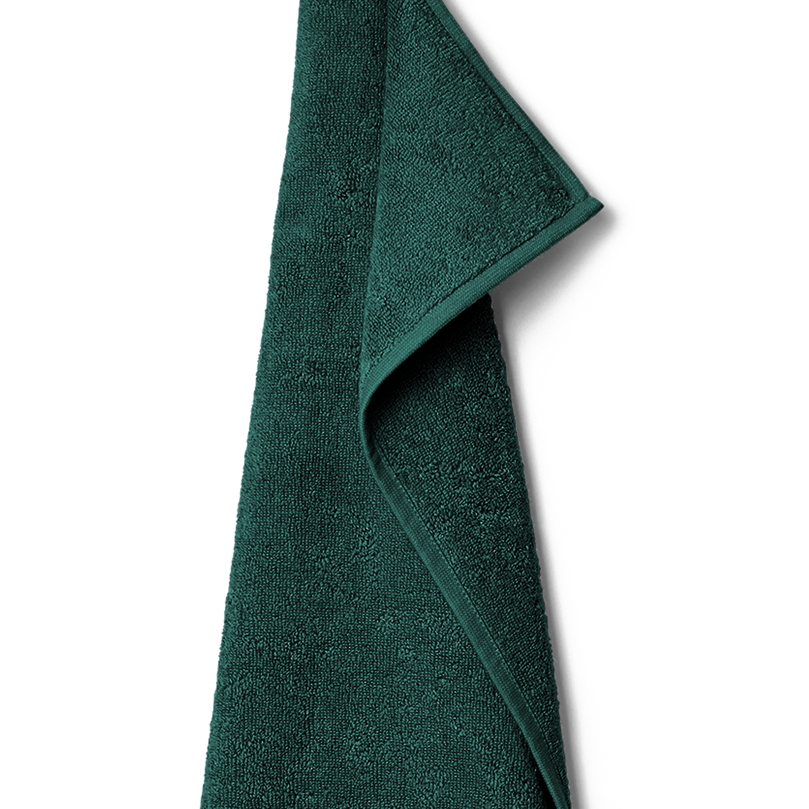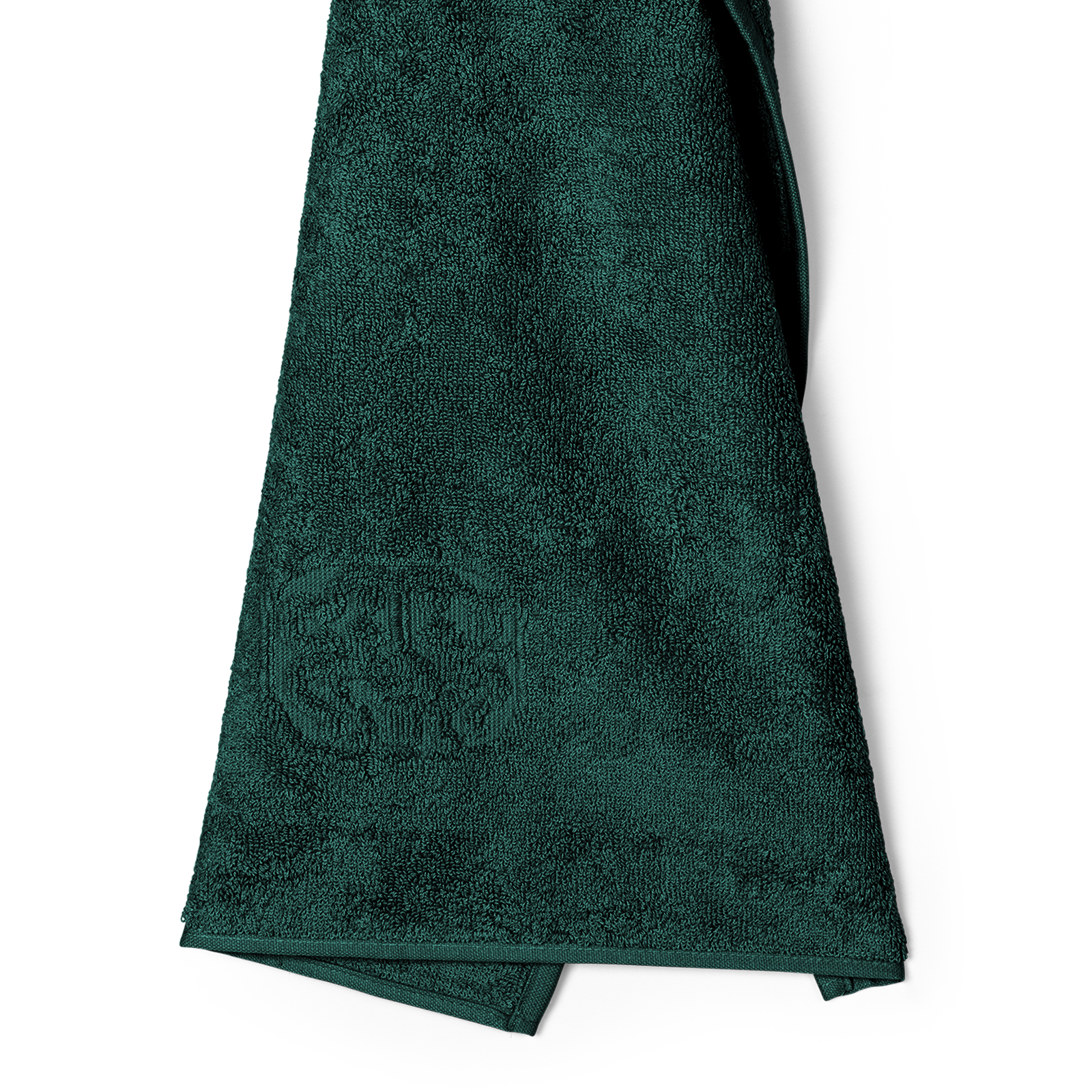 Das Damask Terry Gästehandtuch zeichnet sich durch ein schlichtes Design aus, mit dem ikonischen Logo von Georg Jensen Damask als elegantes eingewebtes Detail. Evergreen ist ein ganz dunkles und kühles Grün. Klassisch und anspruchsvoll.