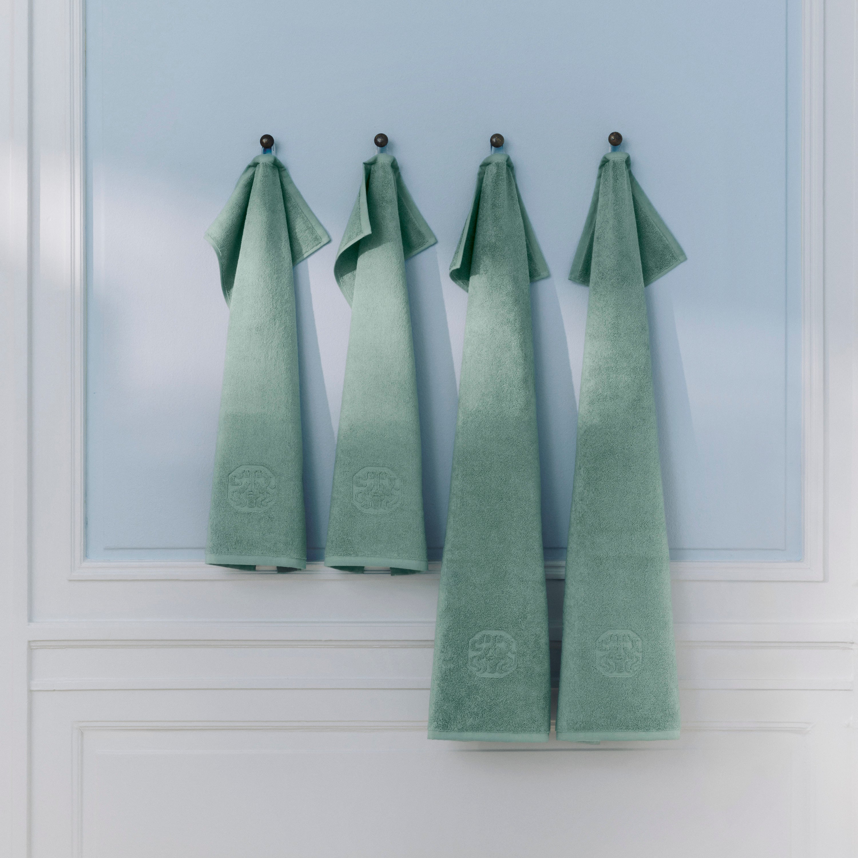 Das Damask Terry Gästehandtuch zeichnet sich durch ein schlichtes Design aus, mit dem ikonischen Logo von Georg Jensen Damask als elegantes eingewebtes Detail. Sage Green ist eine kühle Nuance von Grün.