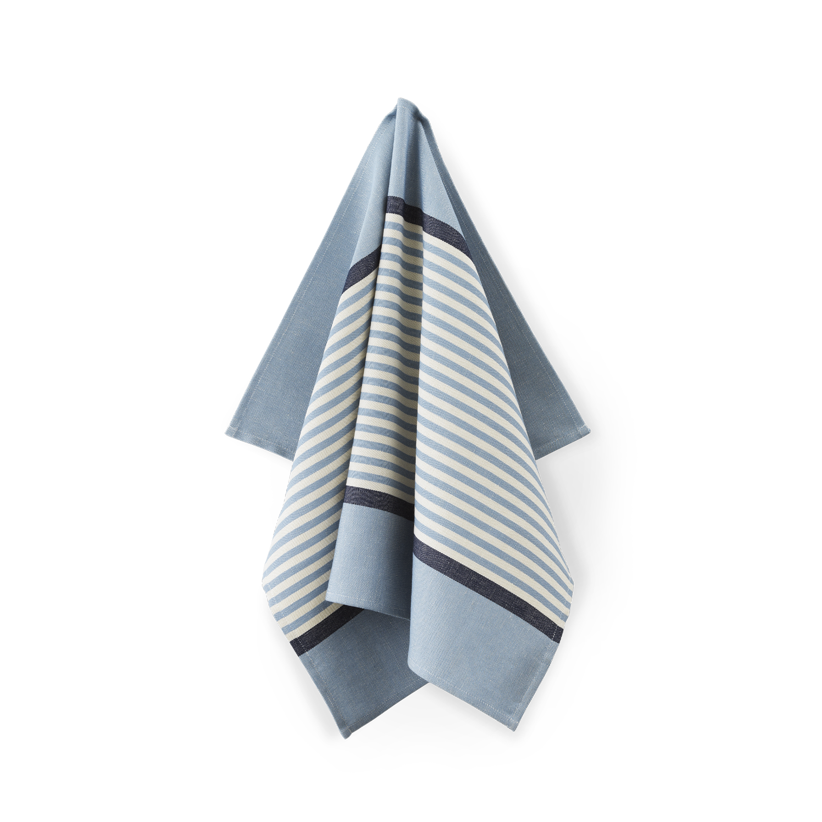 Abild ist ein Klassiker in der Kollektion von Georg Jensen Damask und feiert in diesem Jahr sein 35‑jähriges Jubiläum. Das ikonische Design ist in einer Kombination aus 50 % Leinen und 50 % Baumwolle gewebt, und der klare Ausdruck wirkt sowohl für sich allein als auch in Kombination mit anderen Geschirrtüchern und Küchentextilien. Die Farbkombination Blue Hour ist eine besondere, limitierte Jubiläumsvariante und besteht aus mittelblauen und tiefblauen Streifen auf einem hellen, beigefarbenen Hintergrund.