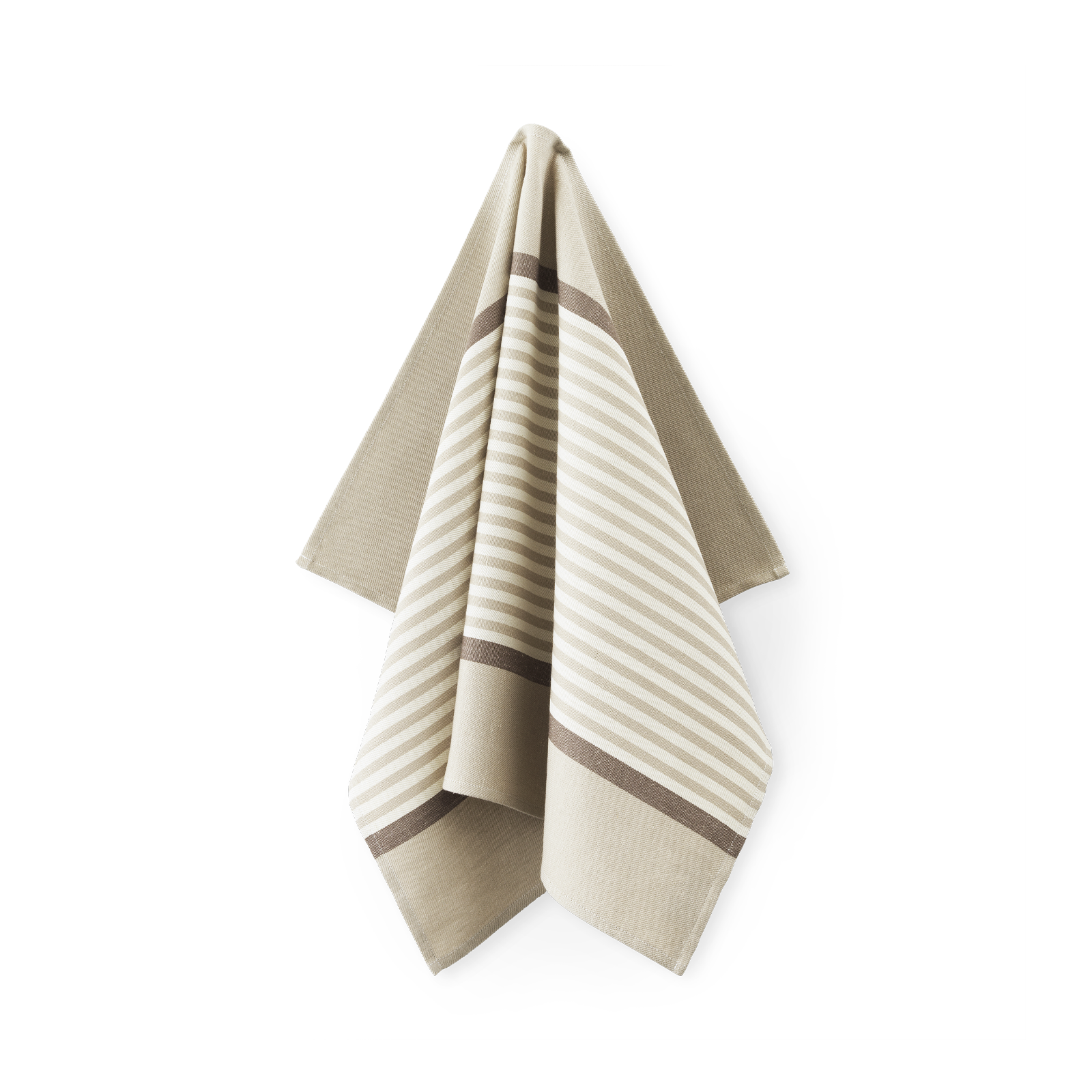 Abild ist ein Klassiker in der Kollektion von Georg Jensen Damask und feiert in diesem Jahr sein 35‑jähriges Jubiläum. Das ikonische Design ist in einer Kombination aus 50 % Leinen und 50 % Baumwolle gewebt, und der klare Ausdruck wirkt sowohl für sich allein als auch in Kombination mit anderen Geschirrtüchern und Küchentextilien. Die Farbkombination Cashmere ist eine besondere, limitierte Jubiläumsvariante und besteht aus graubraunen und dunkelbraunen Streifen auf einem hellen, beigefarbenen Hintergrund.