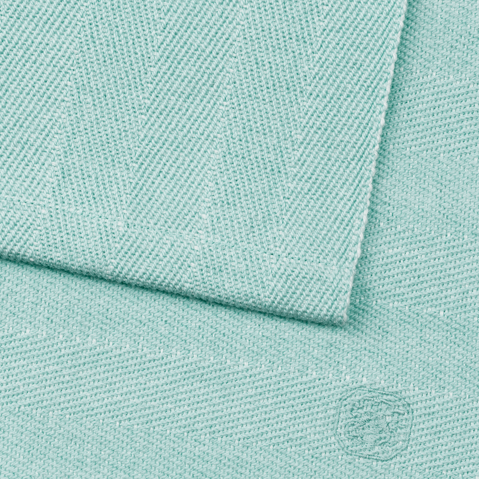 Sorgen Sie mit den Herringbone-Tischsets in der Farbe Deep Glass für einen elegant gedeckten Tisch. Die Tischsets sind aus 100 % kräftiger Baumwolle gewebt. Durch die besondere Webart entsteht das charakteristische Fischgrätmuster – und die kräftigen Garne sorgen dafür, dass die Tischsets fest auf dem Tisch liegen bleiben. Die Tischsets sind zudem mit einem kleinen aufgestickten Logo im gleichen Farbton wie das Gewebe versehen. Der klare blaugrüne Farbton Deep Glass ist von der Farbe inspiriert, die Rohglas aufweist.