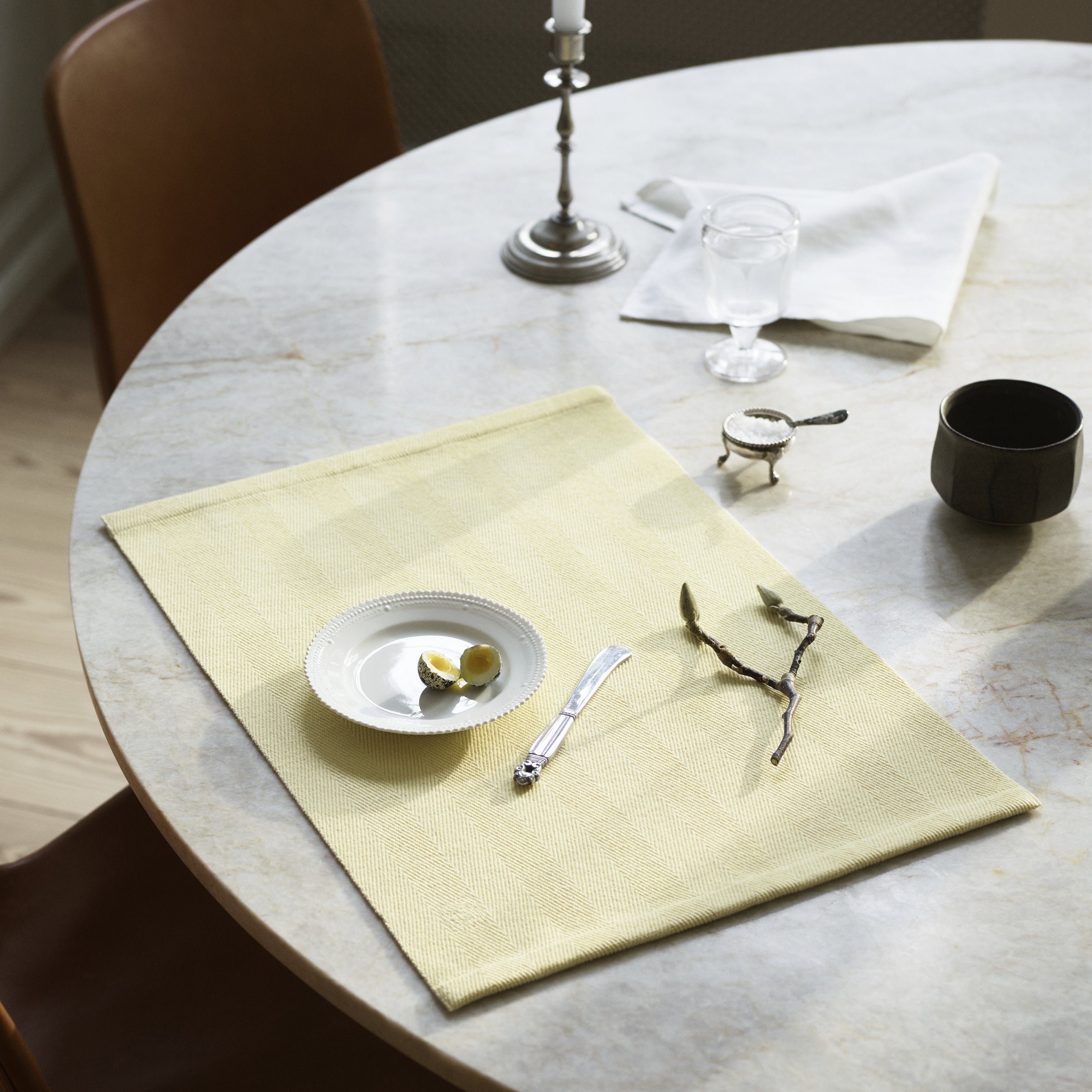 Das Herringbone-Tischset ist nach der Webtechnik benannt, die das charakteristische Fischgrätenmuster erzeugt. Es ist so gewebt, dass das Textil dem alltäglichen Gebrauch standhält, aber zugleich auch bei festlicheren Anlässen auf dem Tisch schön aussieht. Diese rechteckigen Tischsets messen 50 x 36 cm und werden im Zweierpack verkauft. Das Sortiment umfasst darüber hinaus Tischläufer und runde Tischsets. Bereits seit dem Jahr 1756 steht Georg Jensen Damask an erster Stelle, wenn es darum geht, luxuriöse Qualitätstextilien zu kreieren, die den Alltag ein wenig schöner machen.