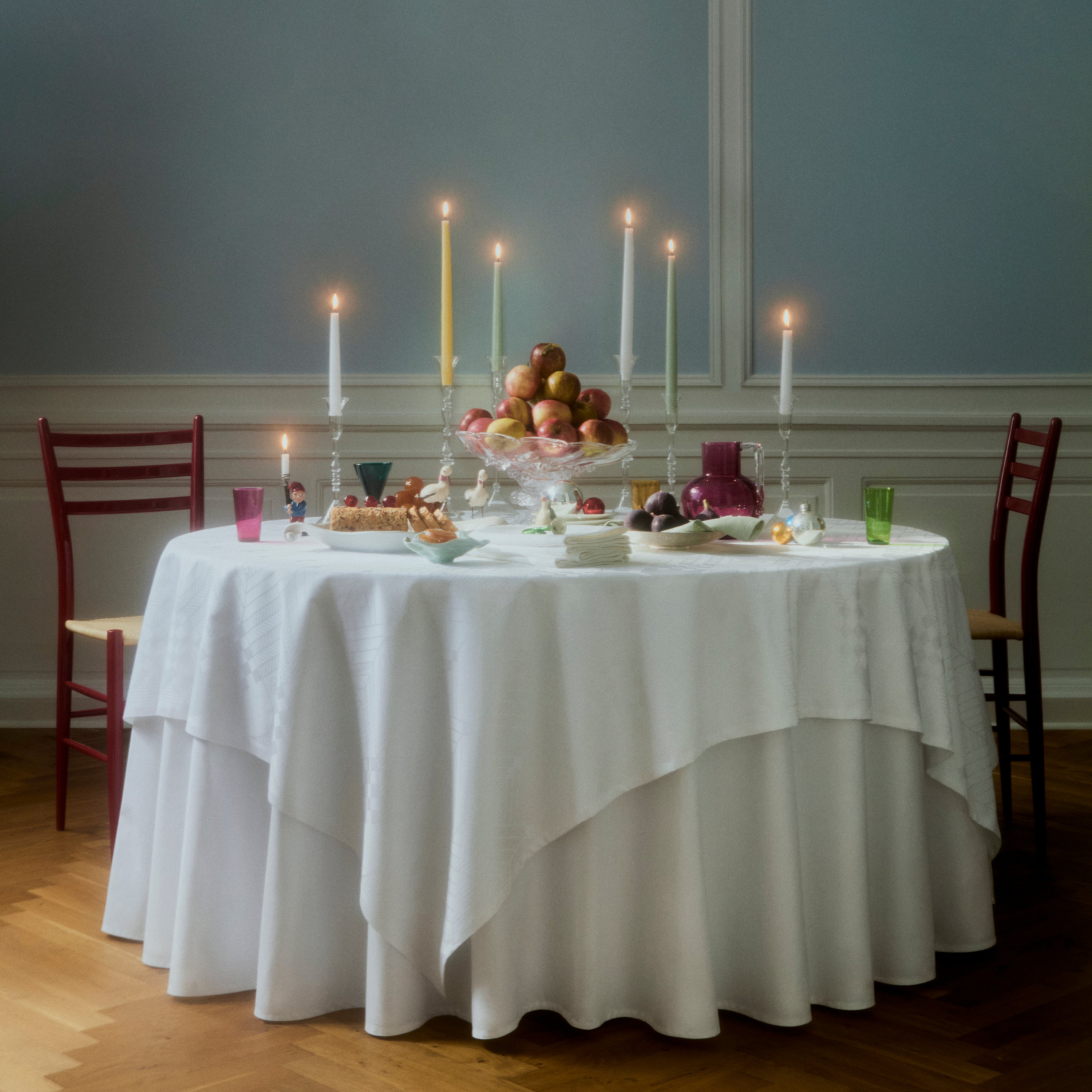 In der weißen Ausführung hebt sich das ikonische Muster auf einem schneeweißen Hintergrund ab. Dies macht diese Tischdecke zu einem zeitlosen Element des Tischgedecks. Eine elegante Leinwand, die sich ideal mit Schmuck in verschiedenen Farben kombinieren lässt oder auf klassische und minimalistische Weise eingesetzt werden kann.