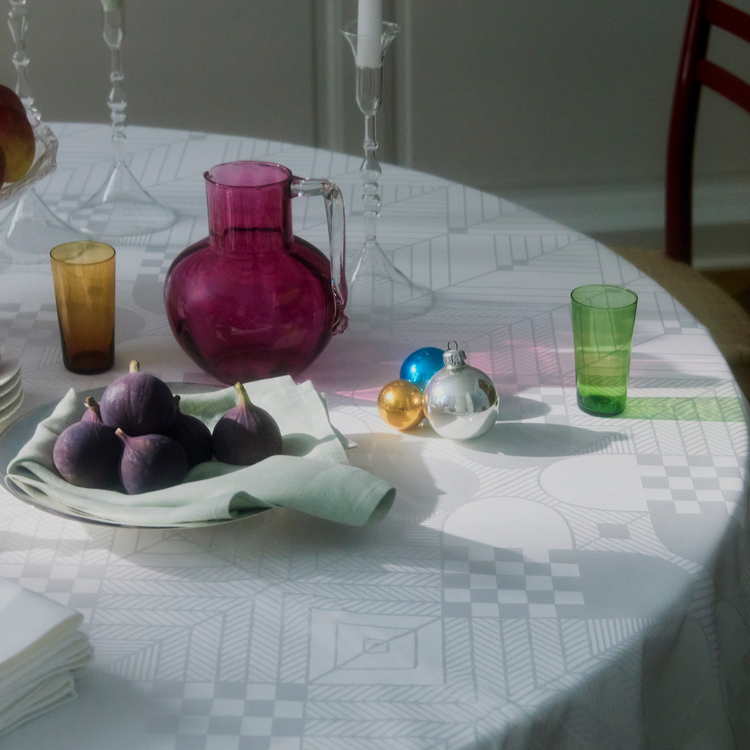 Das Motiv der Tischdecke wurde von Bodil Bødtker-Næss entworfen, die in den 1970er-Jahren Teil des inneren Kreises um Georg Jensen Damask war und auch hinter dem klassischen Osterdesign aus der gleichen Zeitperiode steht. Die geflochtenen Weihnachtsherzen und stilisierten Tannenzweige stellen seit mehr als 40 Jahren den Inbegriff von Weihnachtsstimmung dar und dieses Design ist bei vielen zu Hause ein unverzichtbarer Bestandteil der Weihnachtszeit.