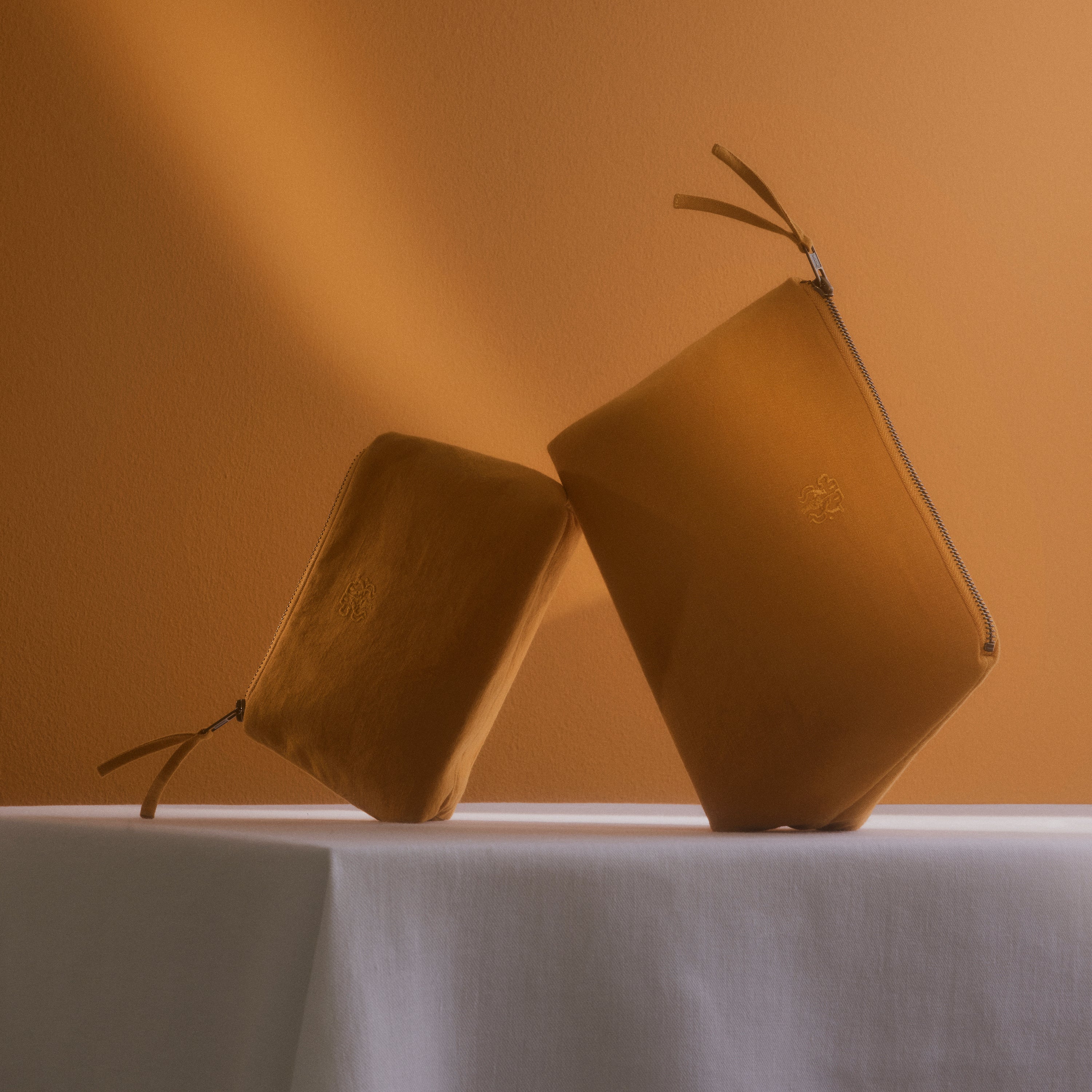 Funktionale und geräumige Kulturbeutel in zeitlosem Design. Die All-Kulturbeutel ist aus 100 % Baumwolle gewebt, hat eine Innentasche und trägt das eingestickte Georg Jensen Damask-Logo als elegantes Detail. Die Farbe Chanterelle ist ein tiefes Orange mit Karamellnuancen – inspiriert von den wunderschönen Farbtönen des Pfifferlings.