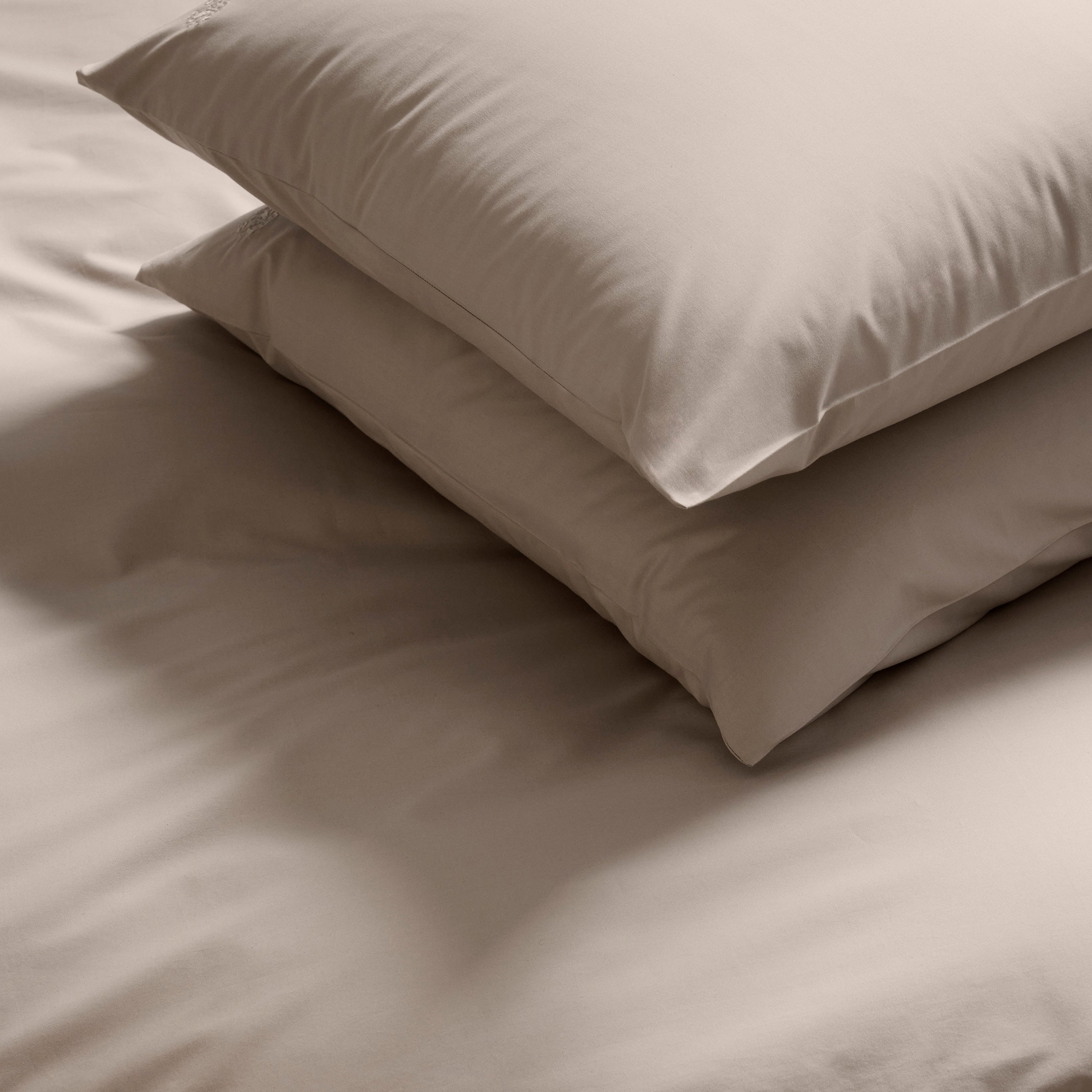 Das Supima Percale-Sortiment umfasst alles von Kopfteilen und Kissen bis hin zu Bettbezug und Laken in Farben wie Hellgrau, Hellgrün, kühlen Blautönen und warmen Erdtönen. Die langen Fasern der Baumwolle verleihen der Bettwäsche einen besonders schönen und sehr gleichmäßigen Farbton.
