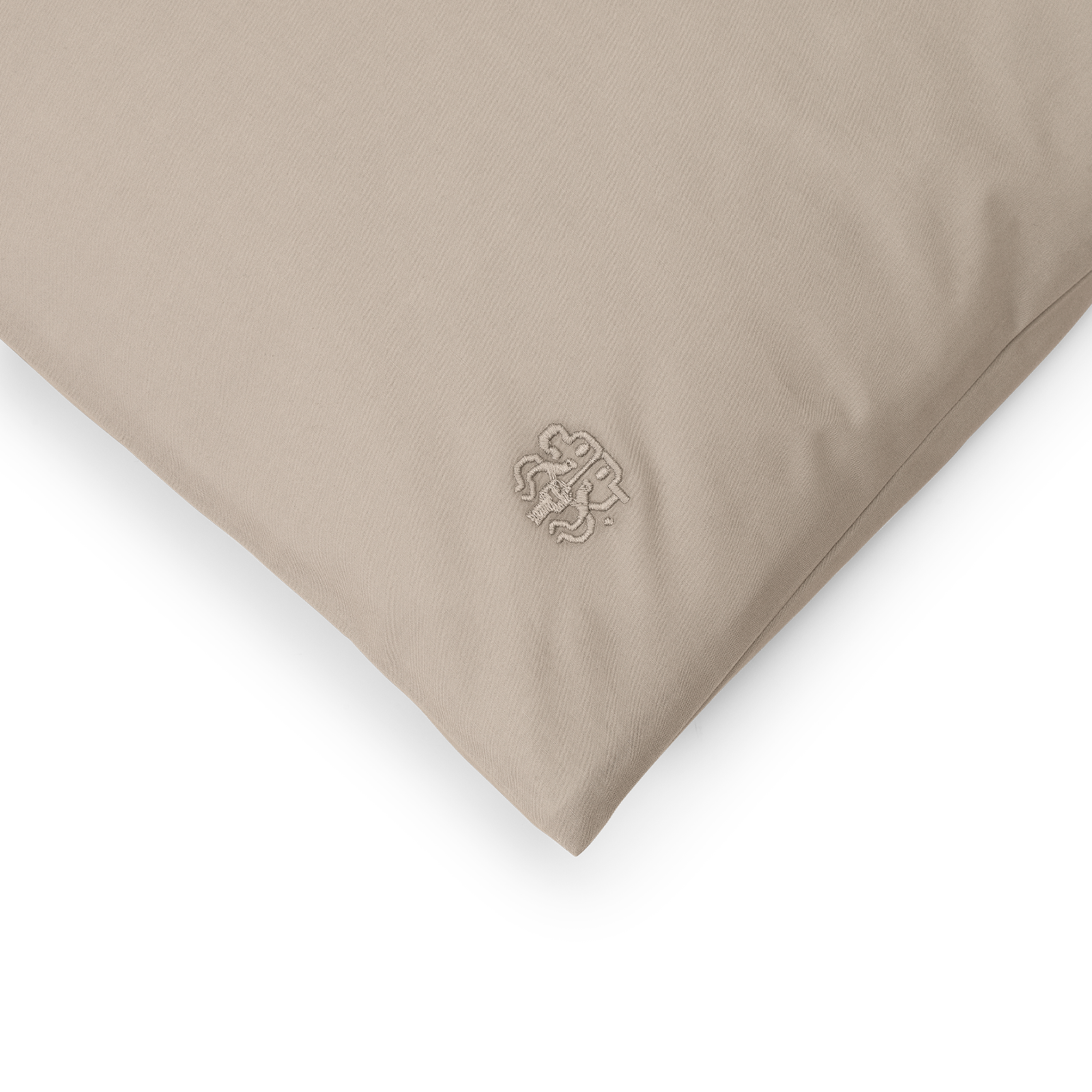 Der Kopfkissenbezug besitzt einen Hotelverschluss und trägt als dezente Stickerei das ikonische Logo von Georg Jensen Damask. Cashmere ist ein dezenter, bräunlicher Grauton mit einer ruhigen und exklusiven Ausstrahlung. Sie ist von der Naturfarbe der Kaschmirwolle inspiriert.